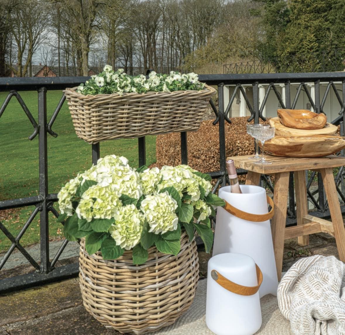 Altankasse i kubu, med plastic indvendigt og ophæng.