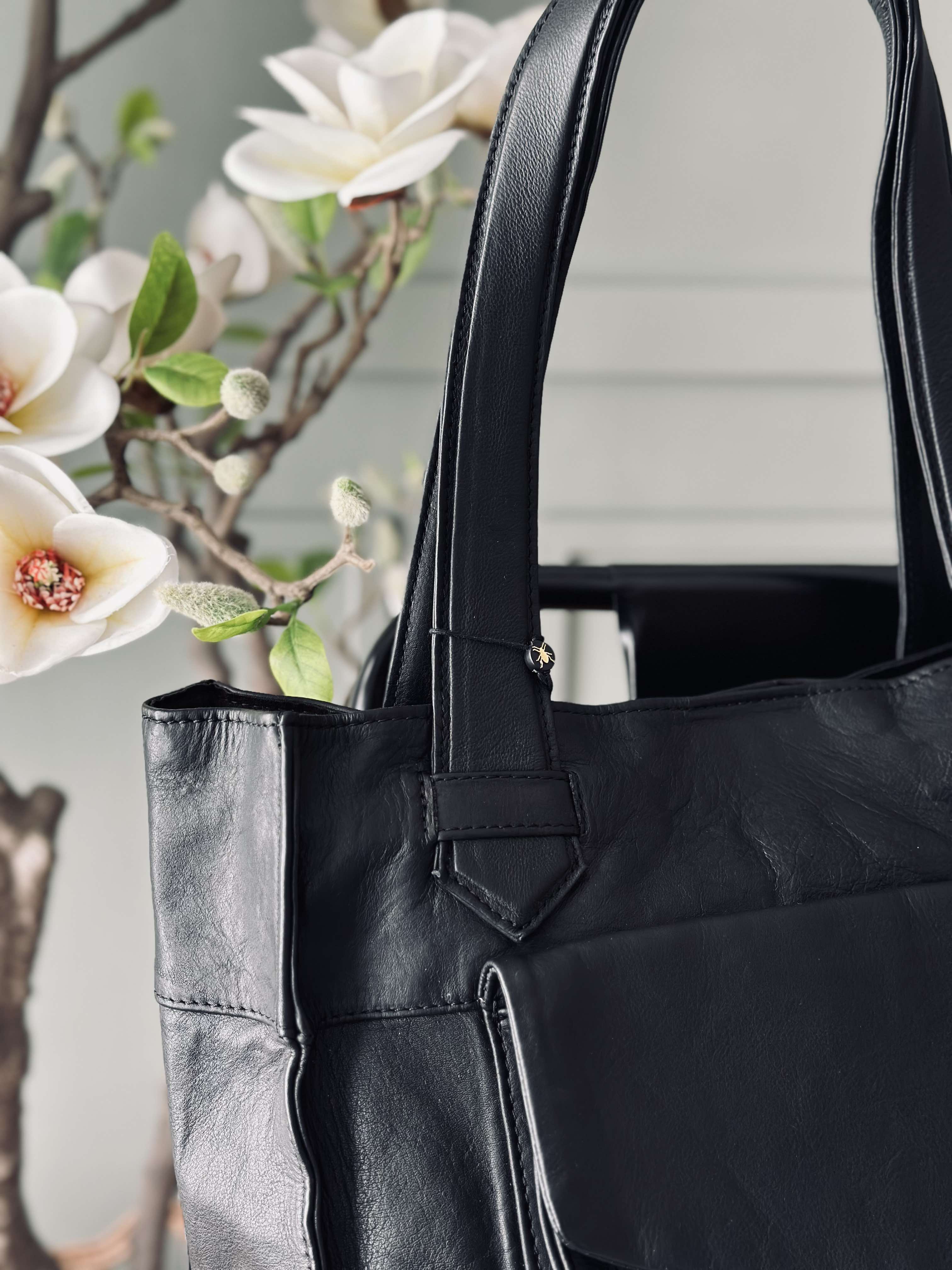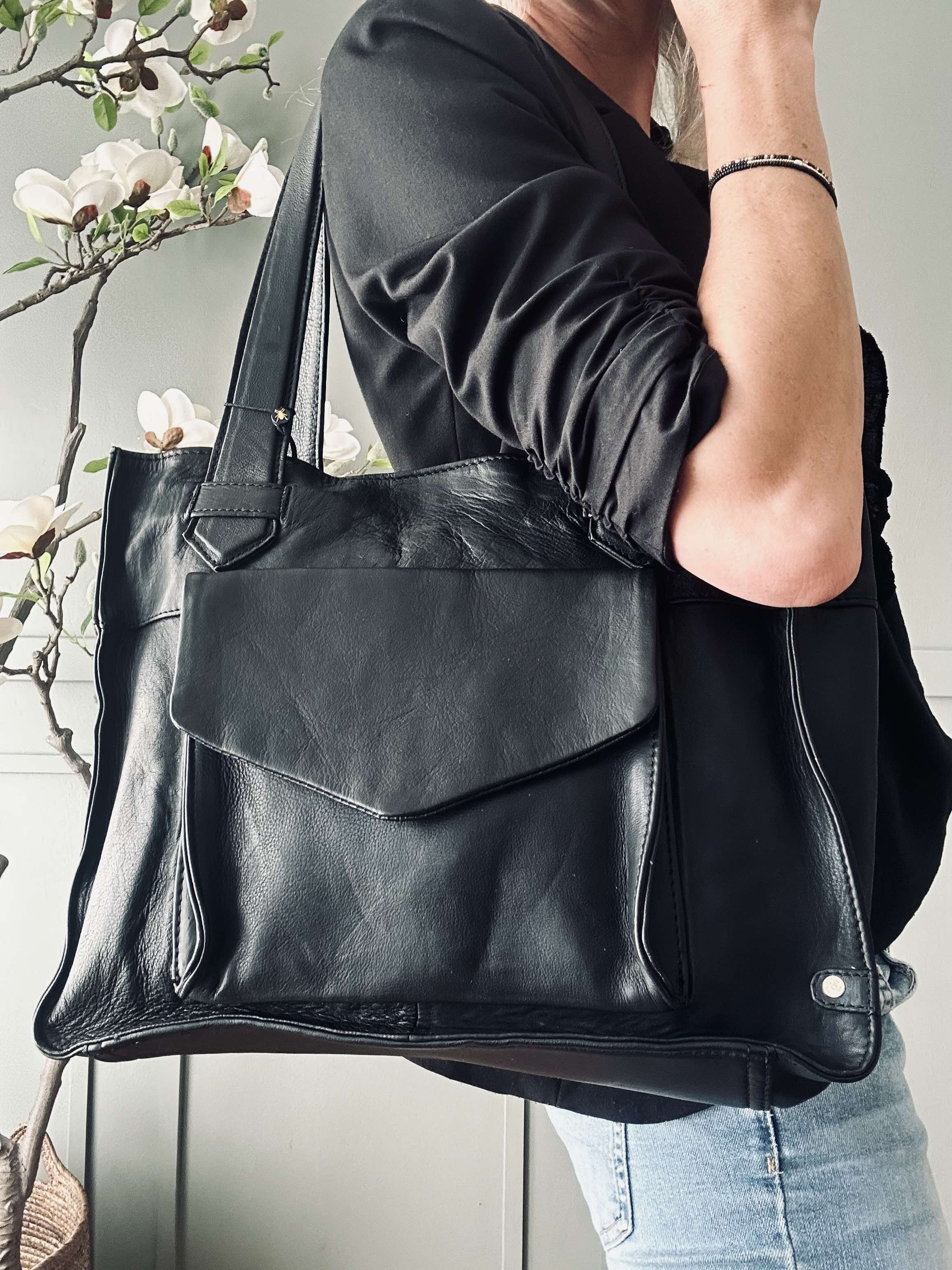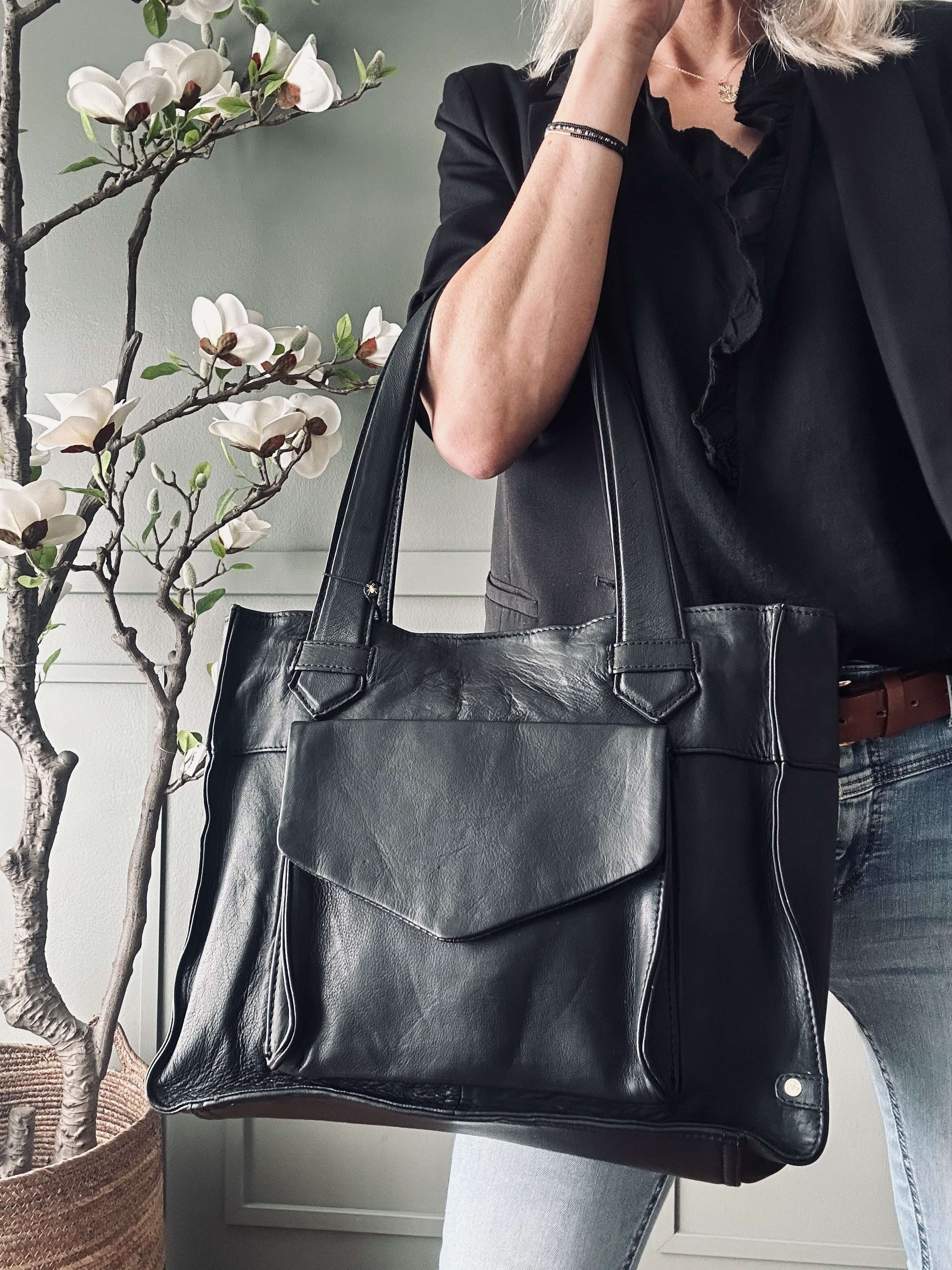 Denne arbejdstaske / shopper kombinerer klassisk elegance med praktisk anvendelighed.
