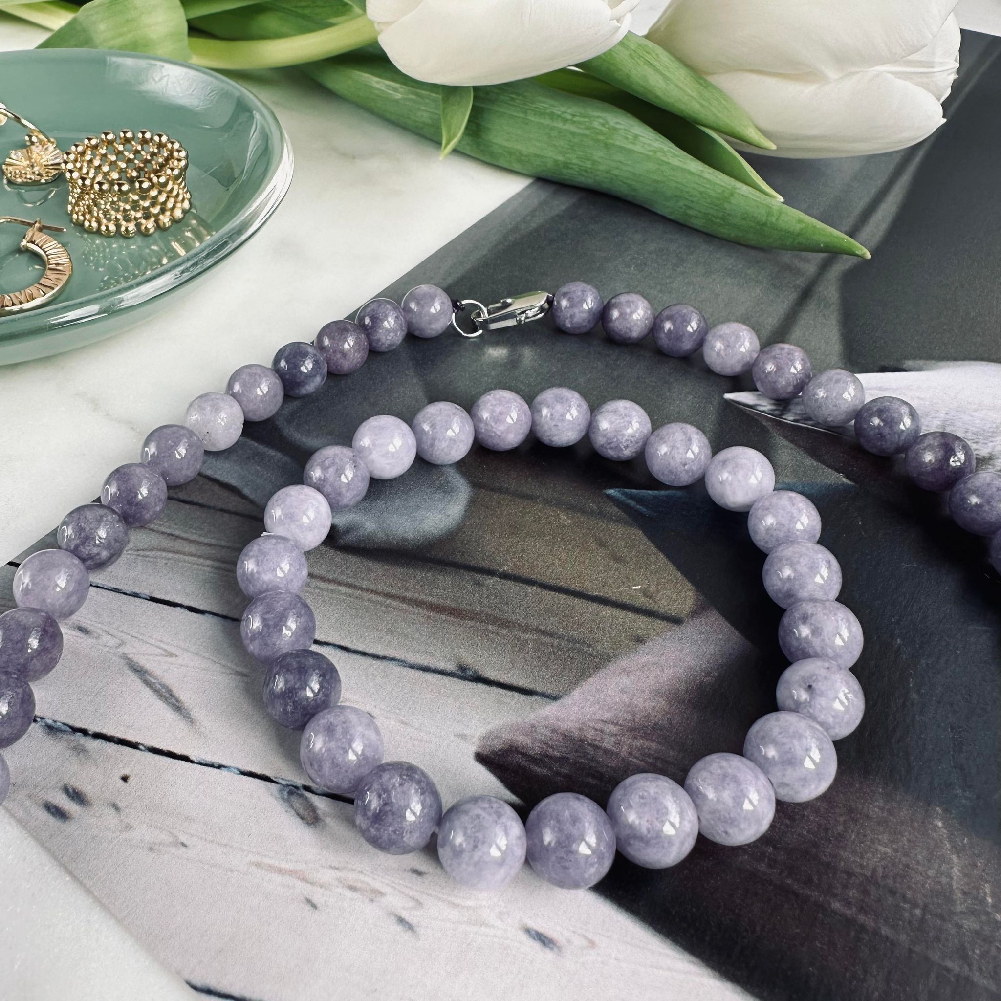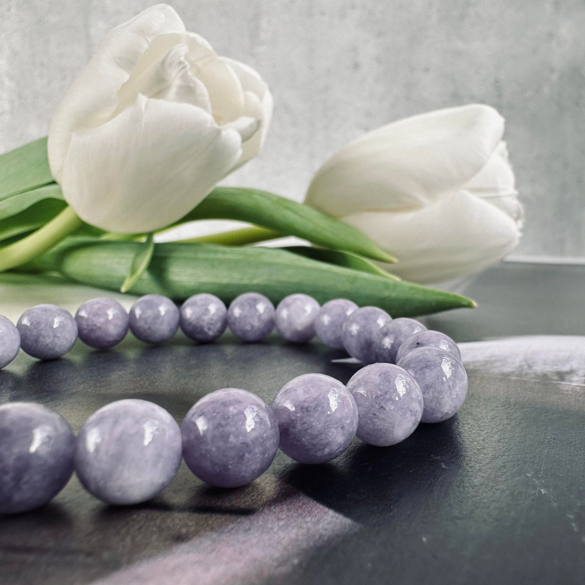 Dette armbånd er i smukke lilla natursten som hver er 7 mm.