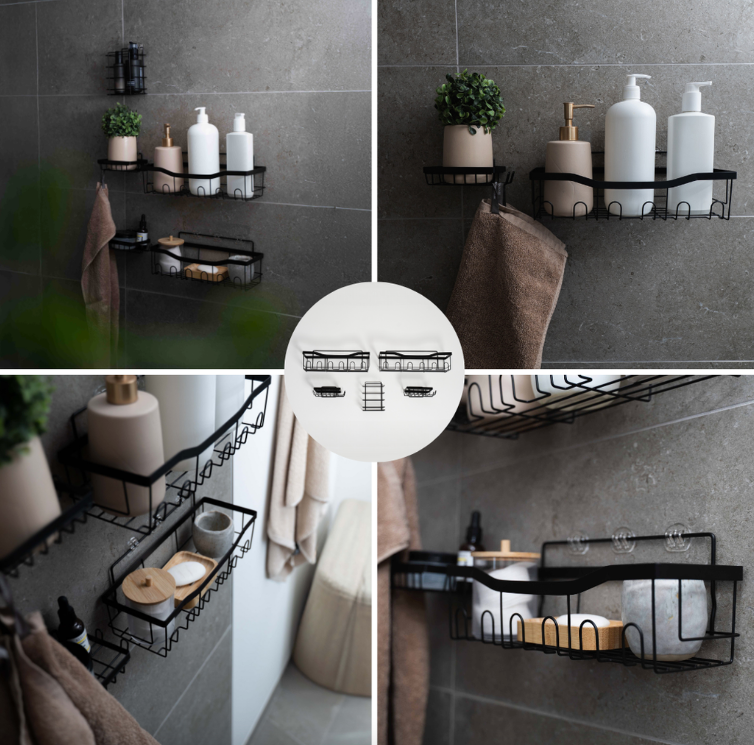 Få styr på hverdagens småting med dette alsidige badeophæng sæt i 5 dele. Uanset om det er i brusekabinen , ved håndvasken , badekarret , i køkkenet eller bryggerset – så er dette sæt din smarte løsning til både opbevaring og dekoration.
