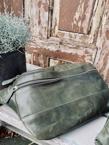 Super lækker bumbag i vintage green – kvalitets-skind.