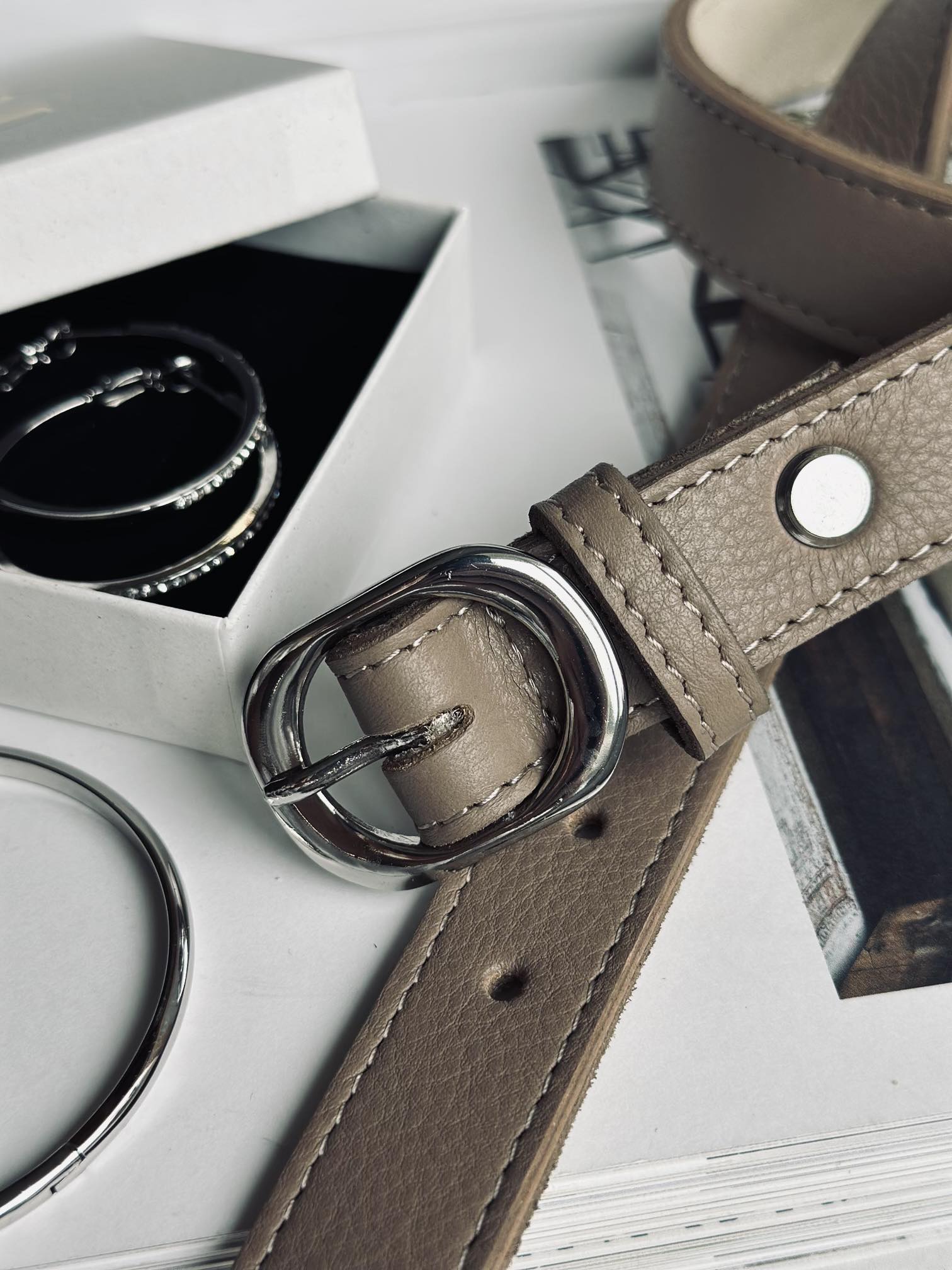 Dette klassiske smalle bælte er det perfekte accessory til den modebevidste kvinde, der ønsker at tilføje et underspillet præg til ethvert outfit. Bæltets klassiske design gør det til et statement-piece, der kan bruges år efter år både til hverdagstøj og festlige looks.