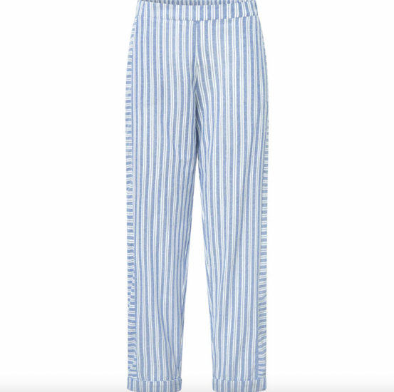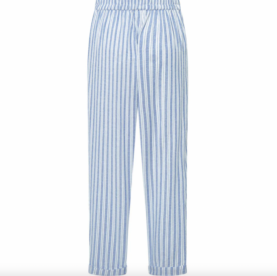 Disse bukser er en essentiel og stilfuld tilføjelse til enhver garderobe. Den trendy blå/hvide stribede print giver et sommerligt og moderne udtryk, der fanger opmærksomheden.