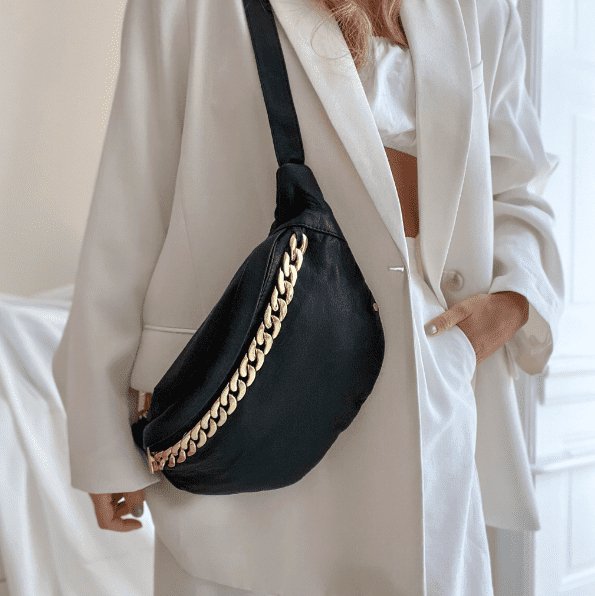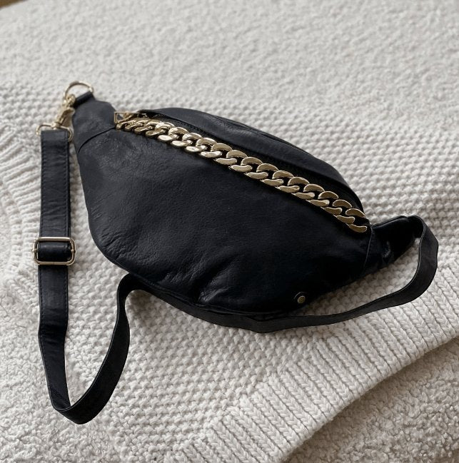 Bumbag - BLACK / GOLD i blød skind kvalitet