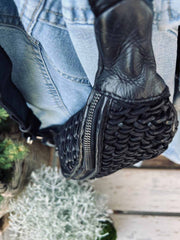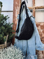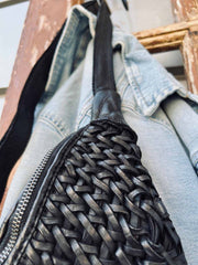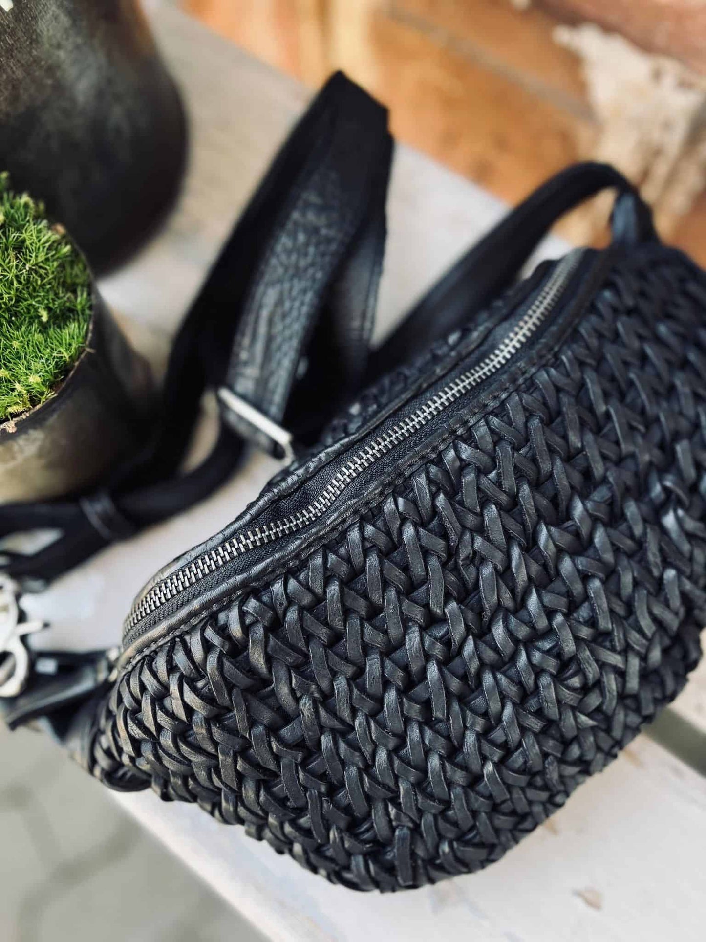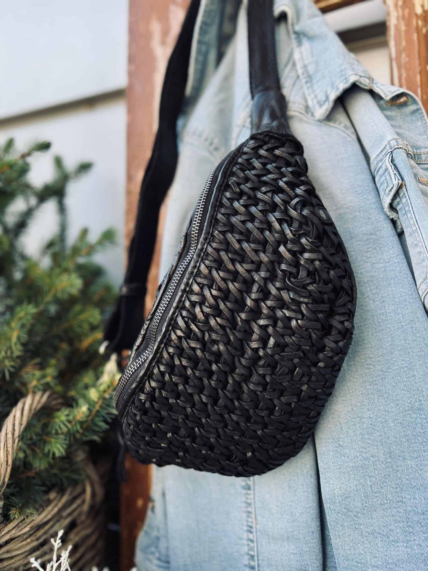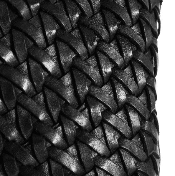 Tasken har et smukt og eksklusivt look, da den er pyntet med den fineste fletning på hele fronten. Den lukkes i toppen med lynlås.