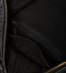 Stilfuld taske med flettet design foran og læder bagpå. Den leveres med en justerbar rem for en behagelig pasform. Der er en lille baglomme med lynlåslukning, samt et rummeligt hovedrum, der indeholder en lille indvendig lynlåslomme til ekstra opbevaring.