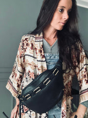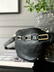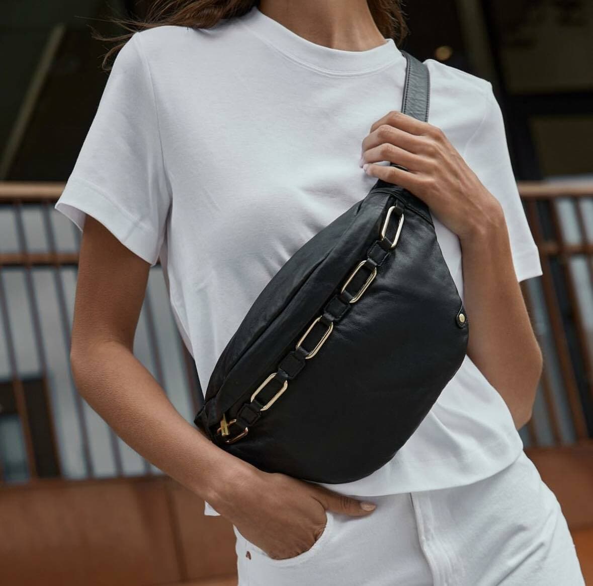 Indvendigt: Bagagerummet har et primært rum med plads til det, der skal til på farten, for eksempel mobiltelefon, pung etc. Derudover har den en lille lynlåslomme til nøgler eller lipgloss.