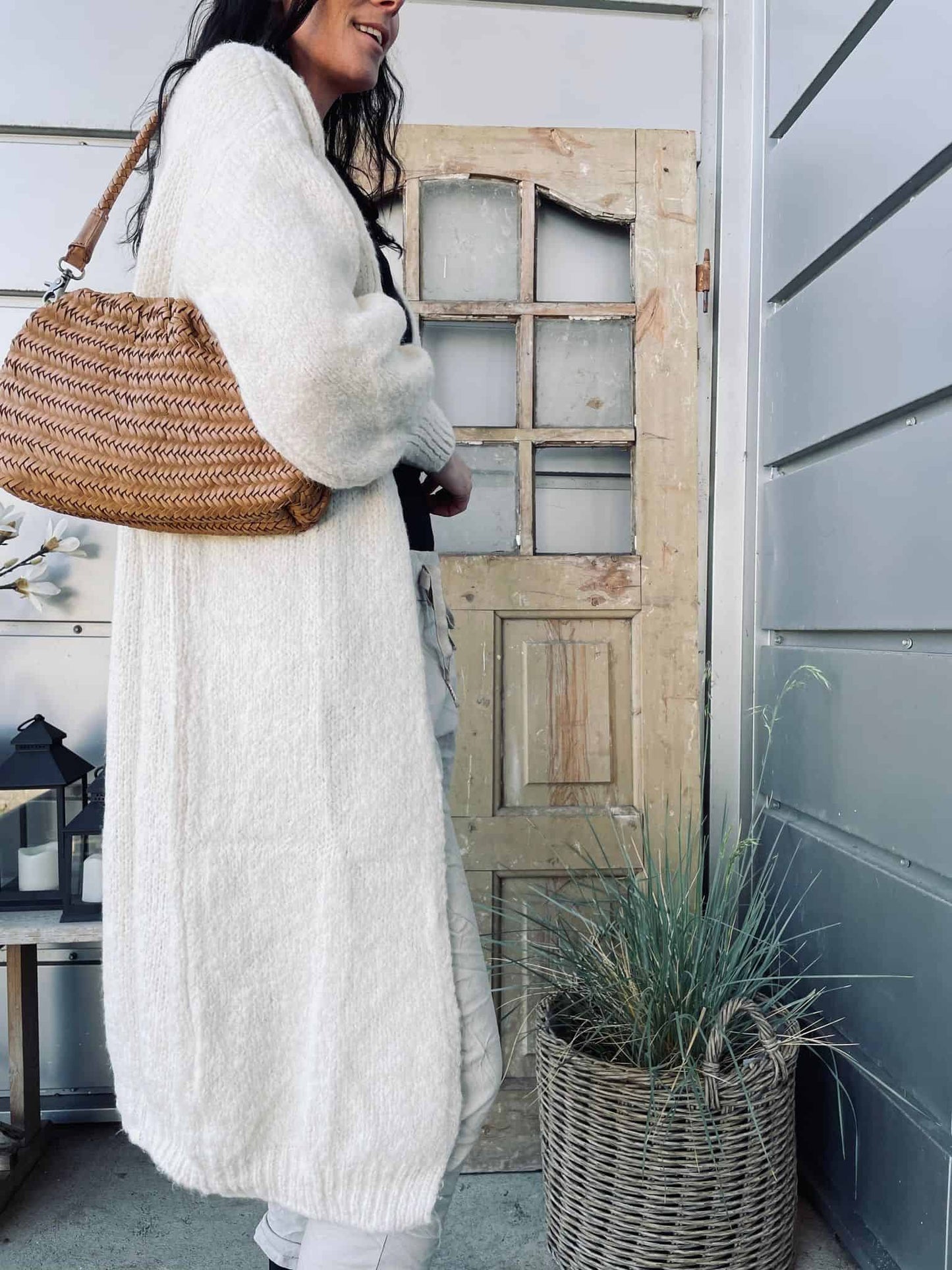 Den perfekte lange off-white cardigan til dig der altid fryser!