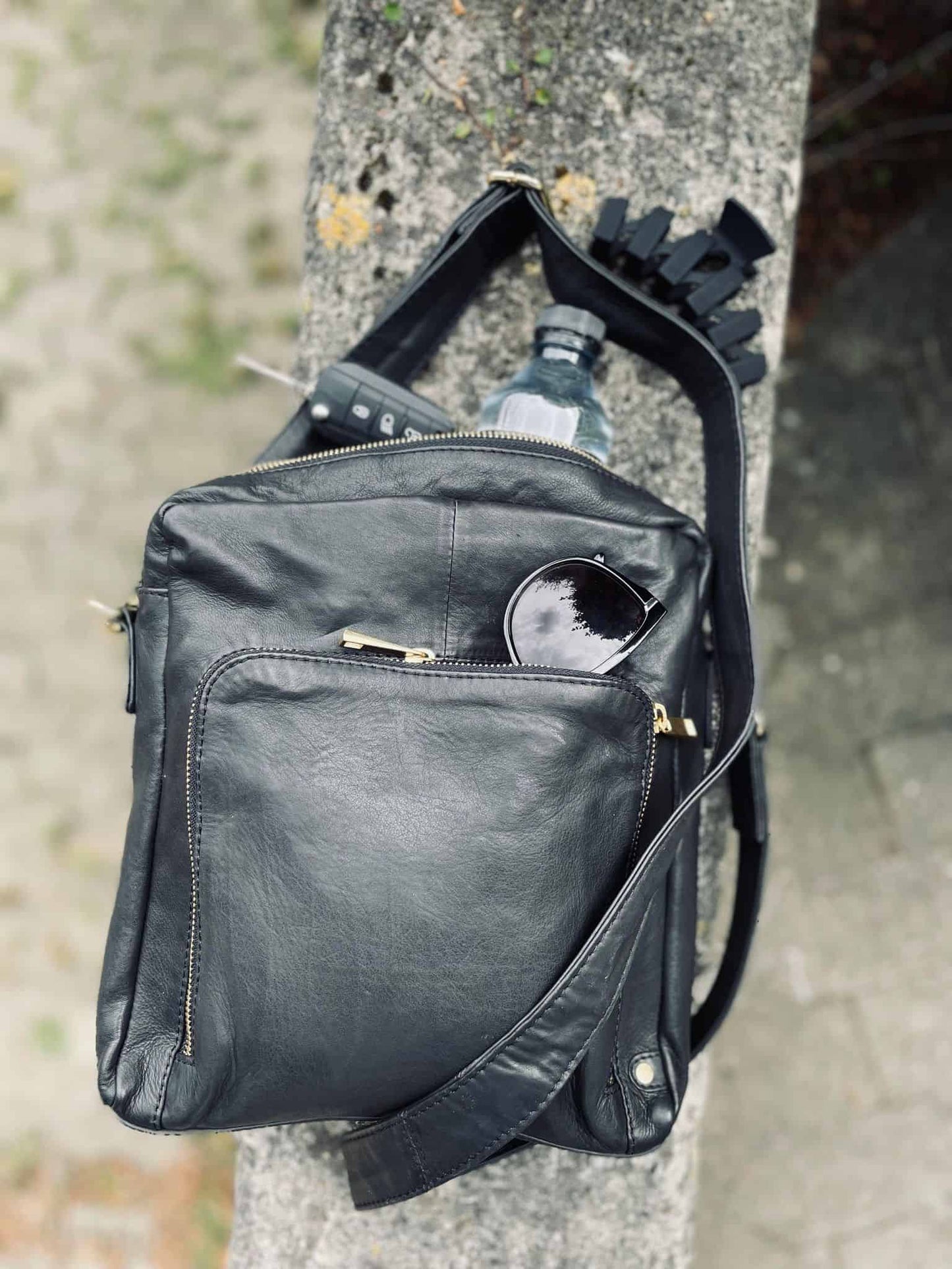 – Lang aftagelig og justerbar crossbody rem medfølger