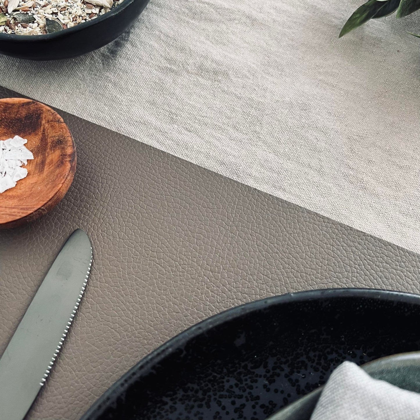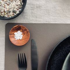 Lækker blød dækkeserviet i taupe grå – Nogen vil nærmere sige brun.