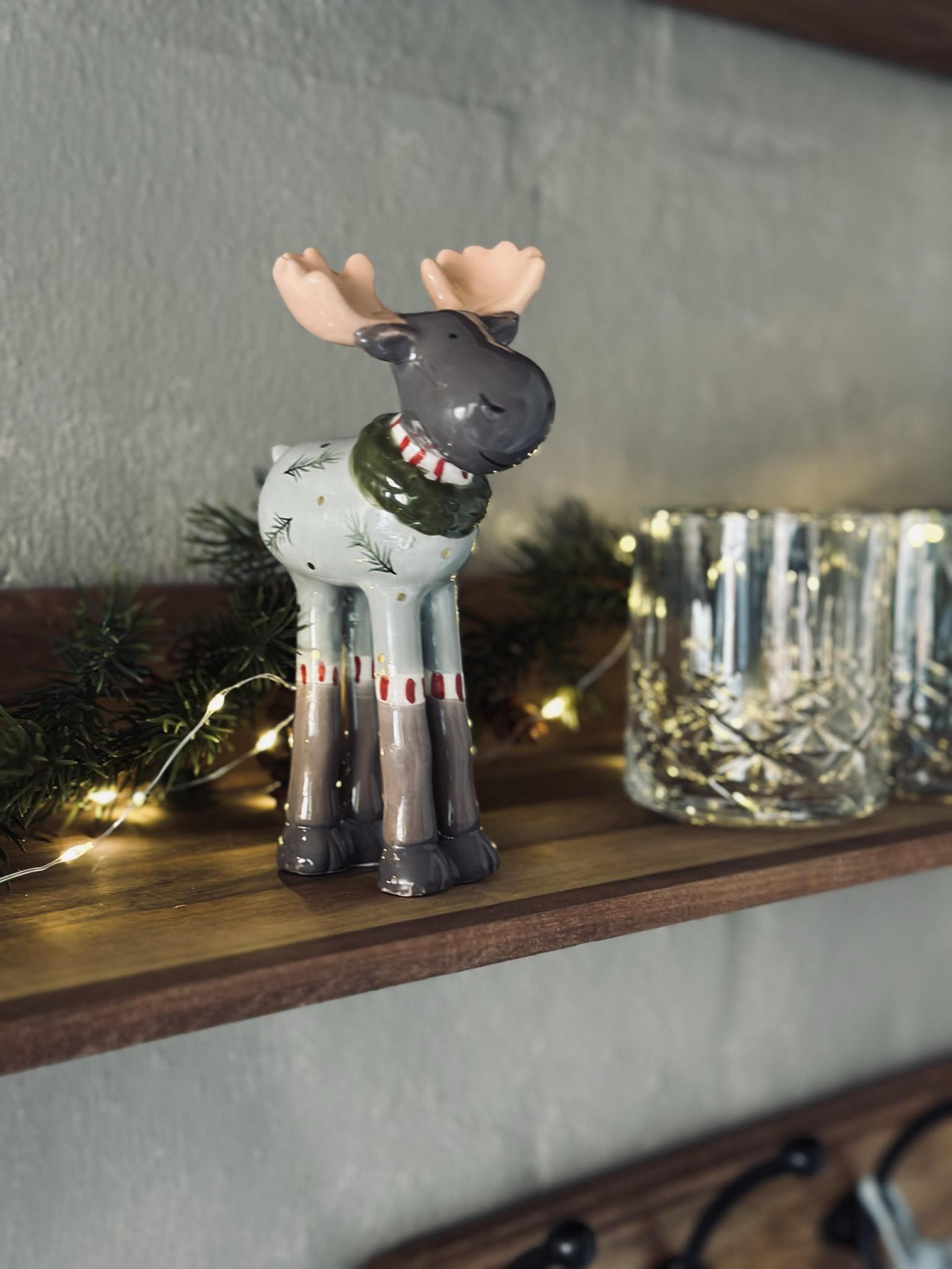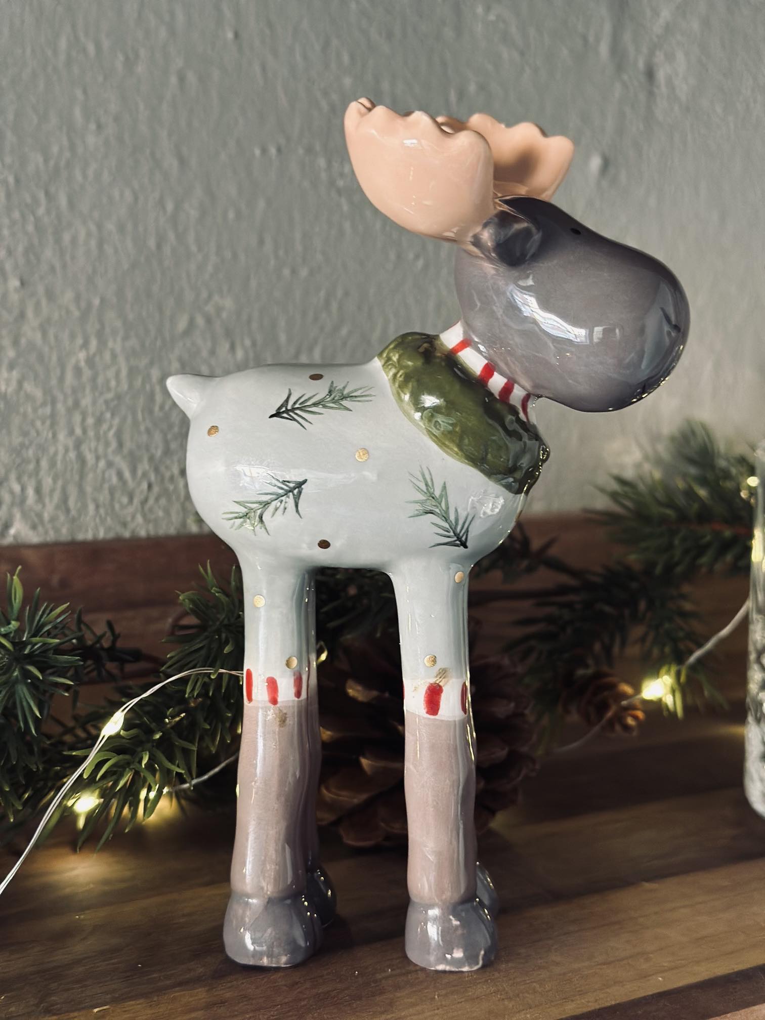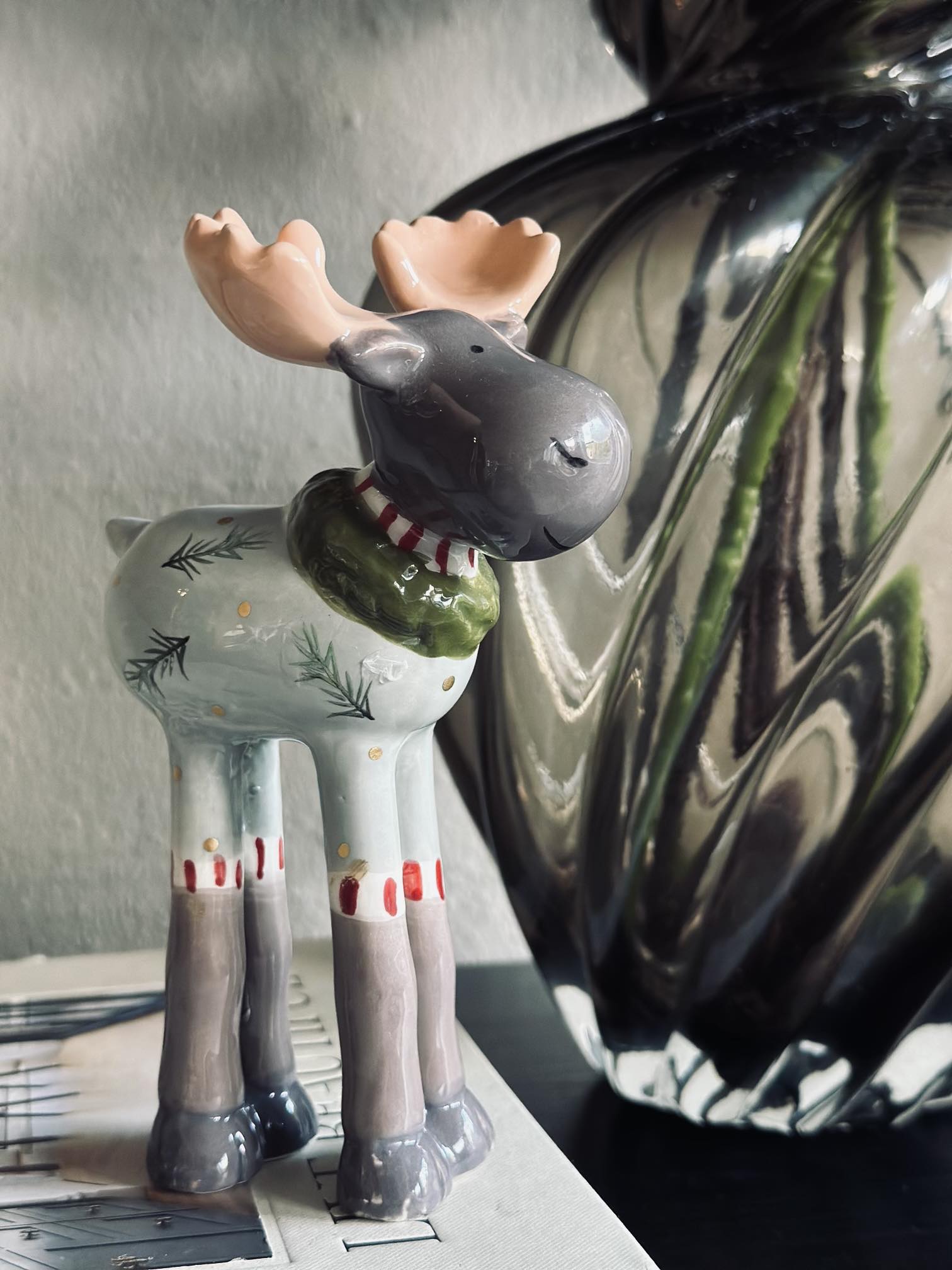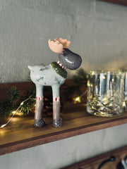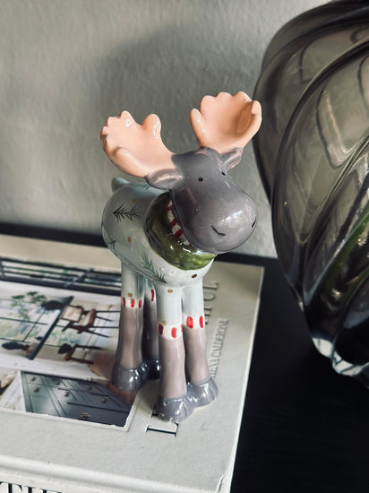 Dekorativ elg i keramik.