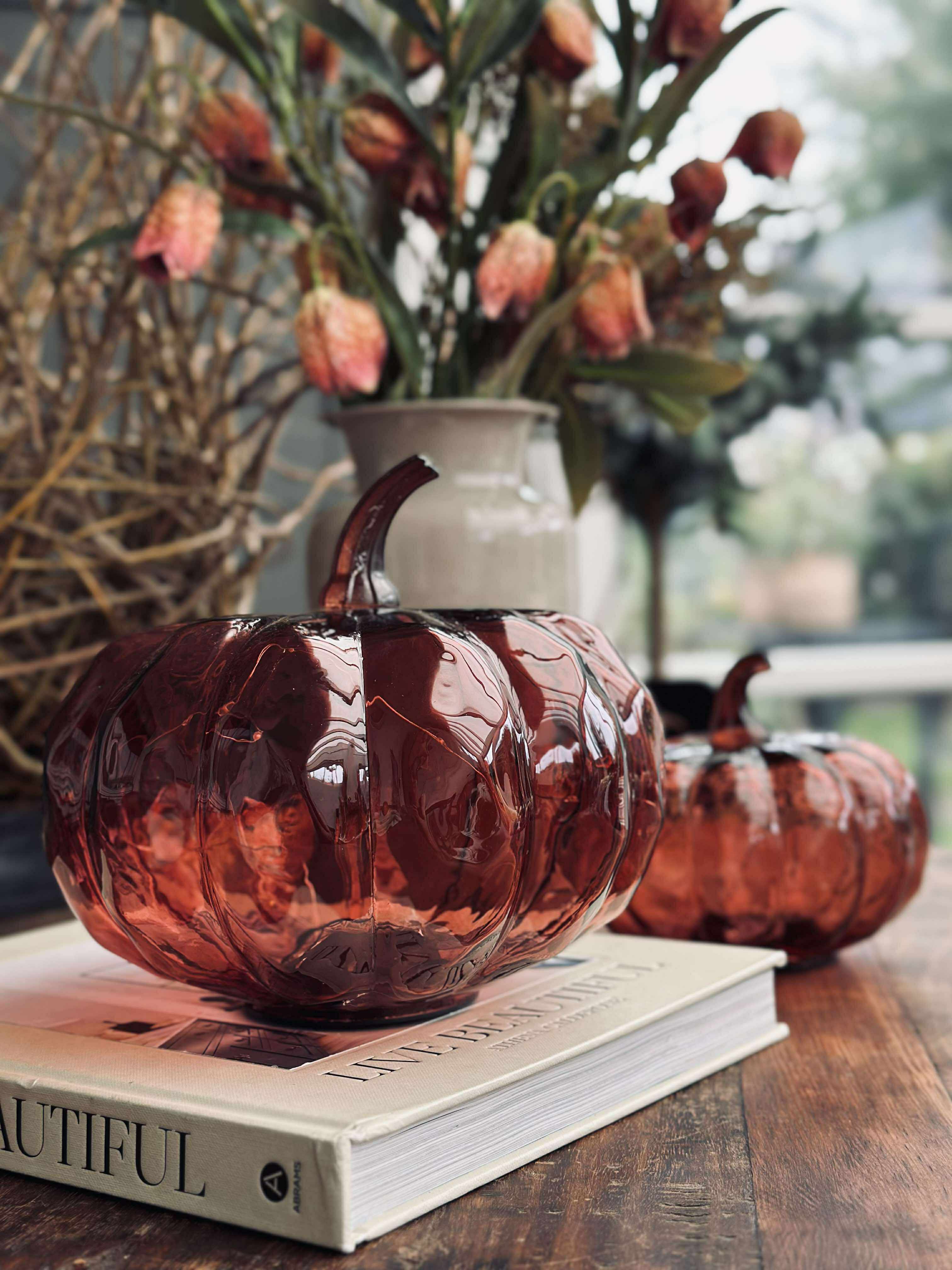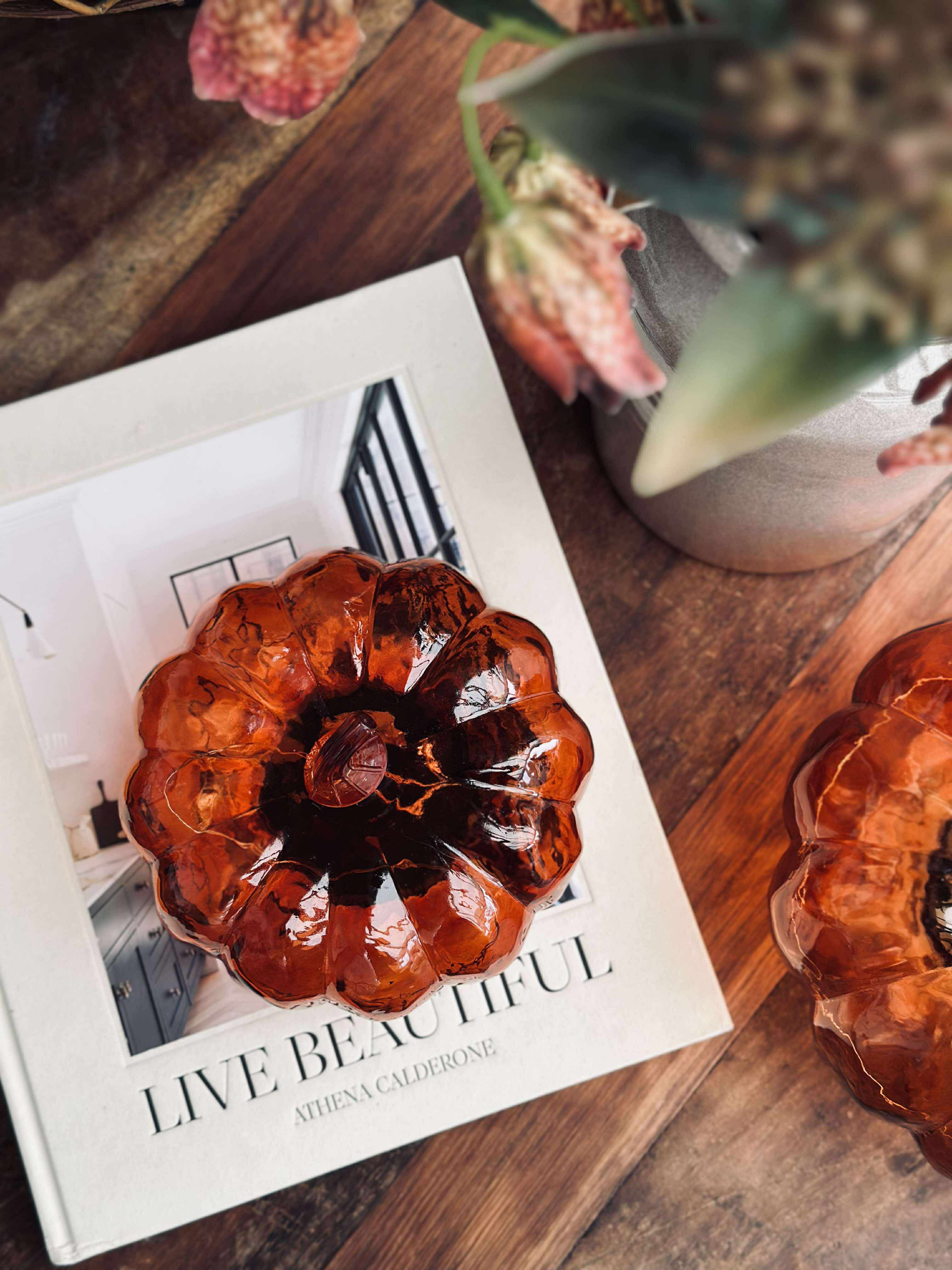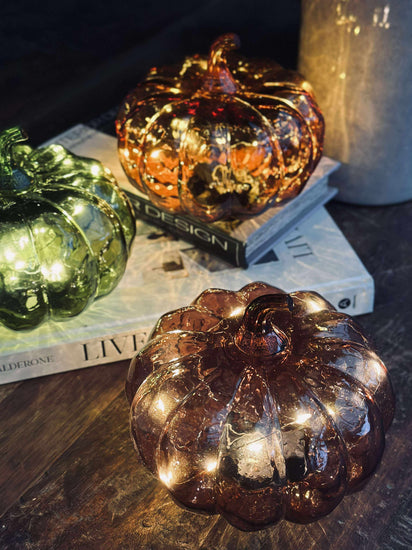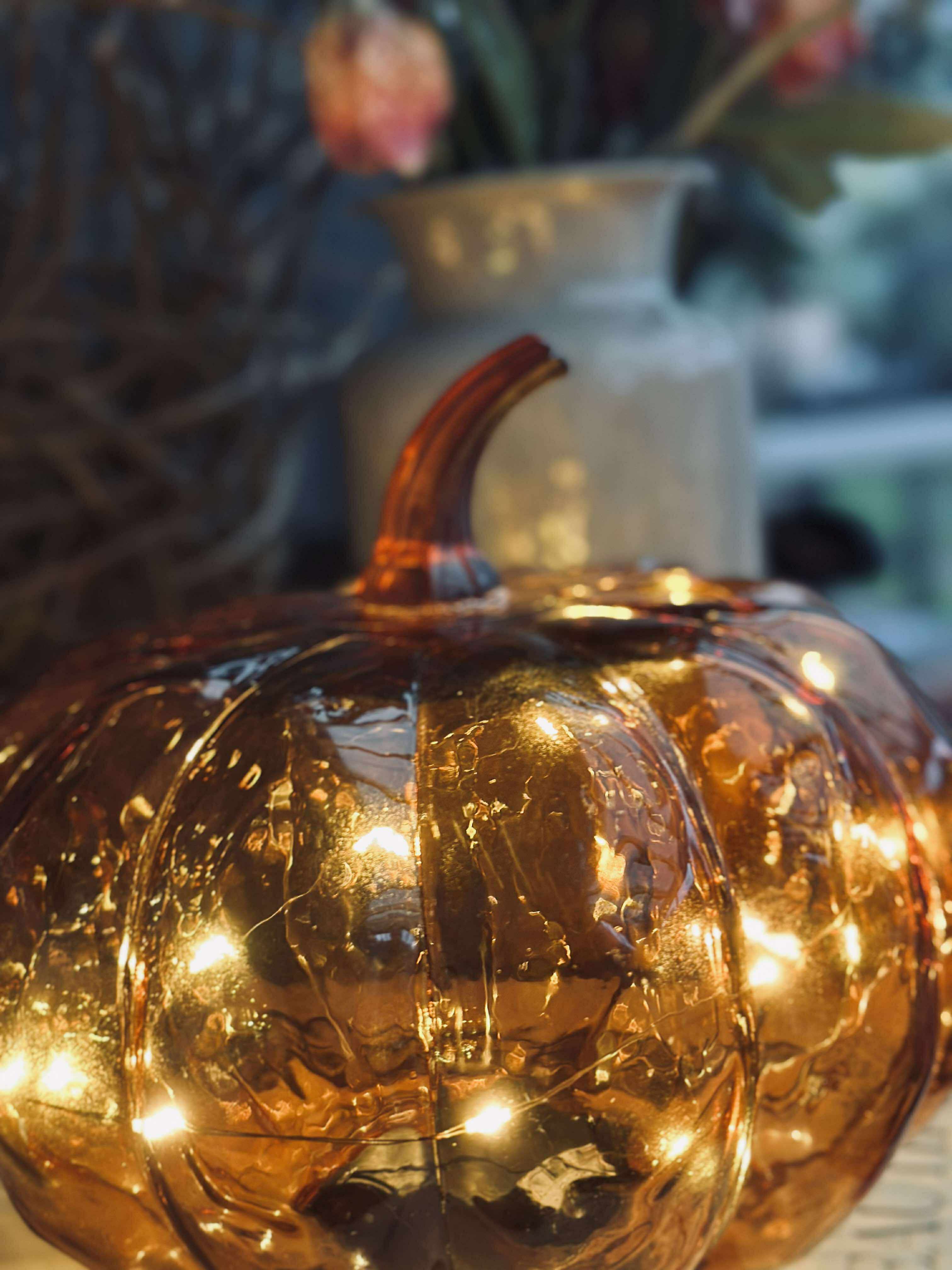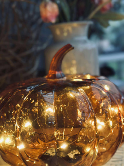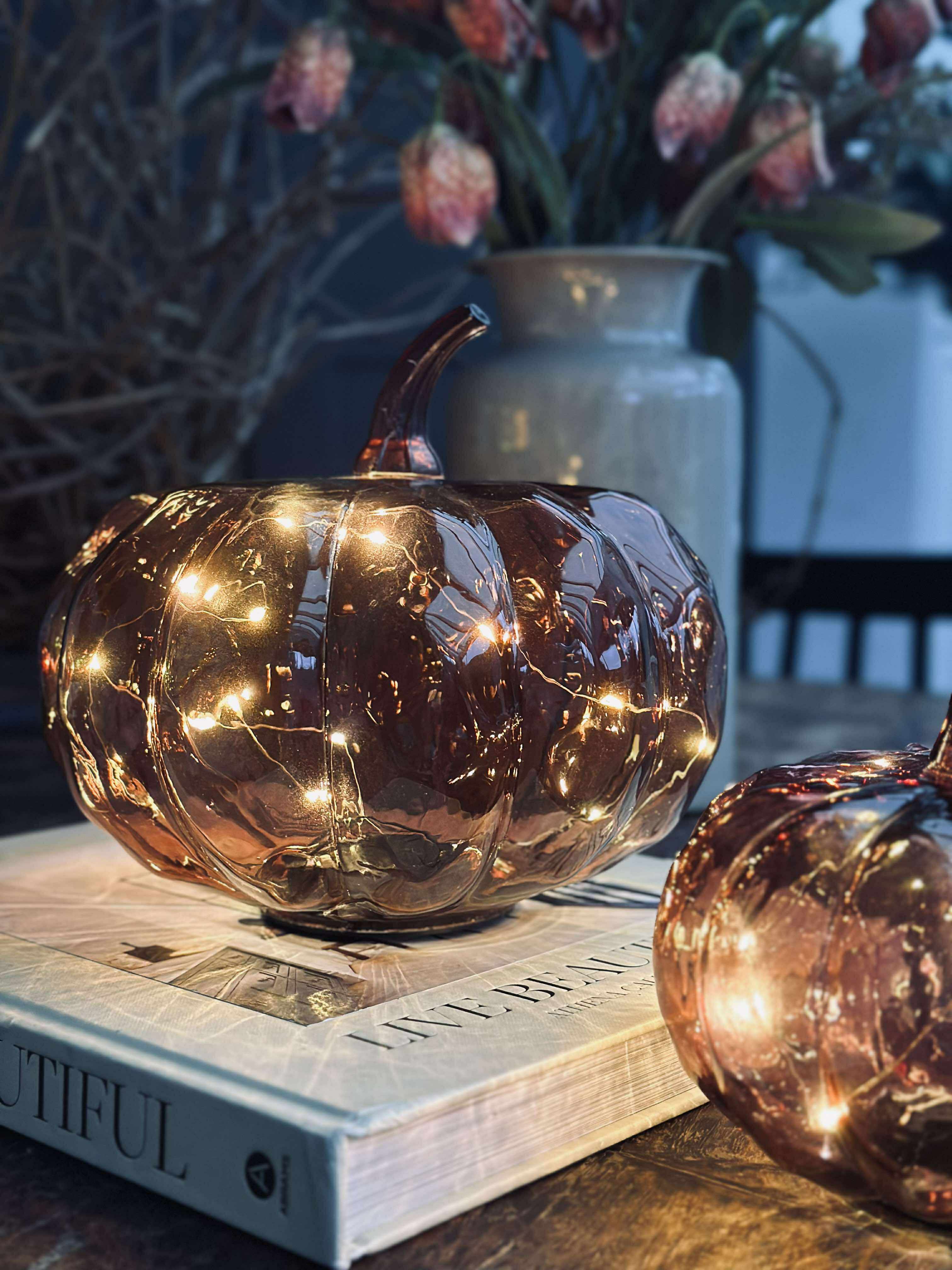Dekorativ græskar med led lys.