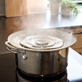 Låget fungerer ved at dampen åbner for lågets huller, så det kan slippe op og undgå at koge over. Overskydende vand fanges i låget som en si. Låget kan ligeledes også bruges som en dampkoger til fx grøntsager.