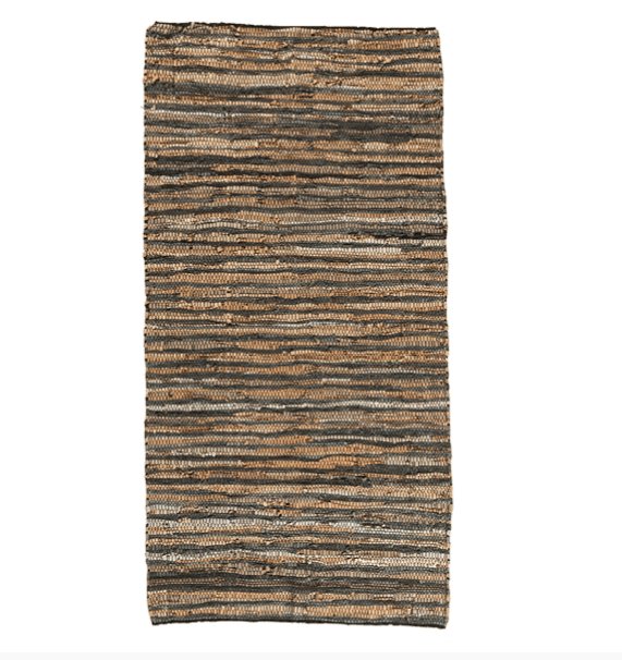 Flot lædertæppe i grå, lys rosa og guld nuancer.