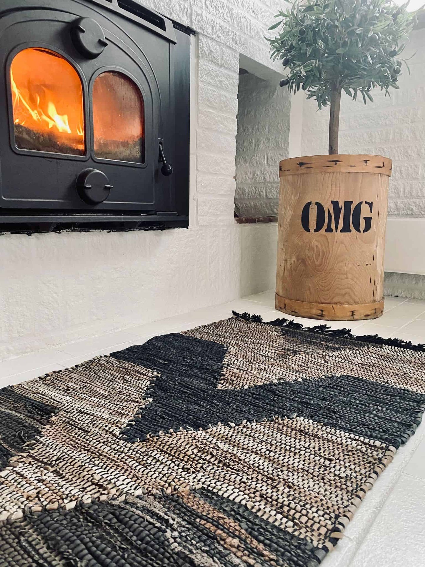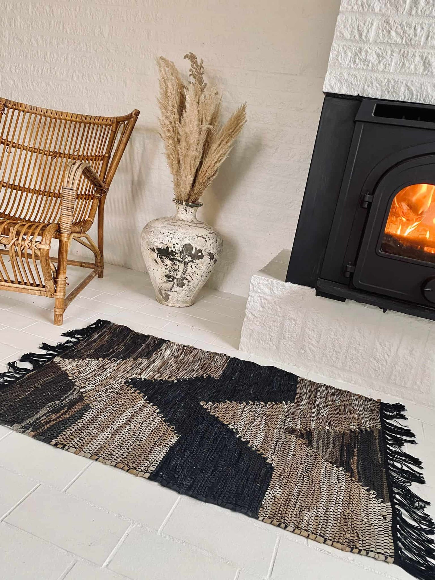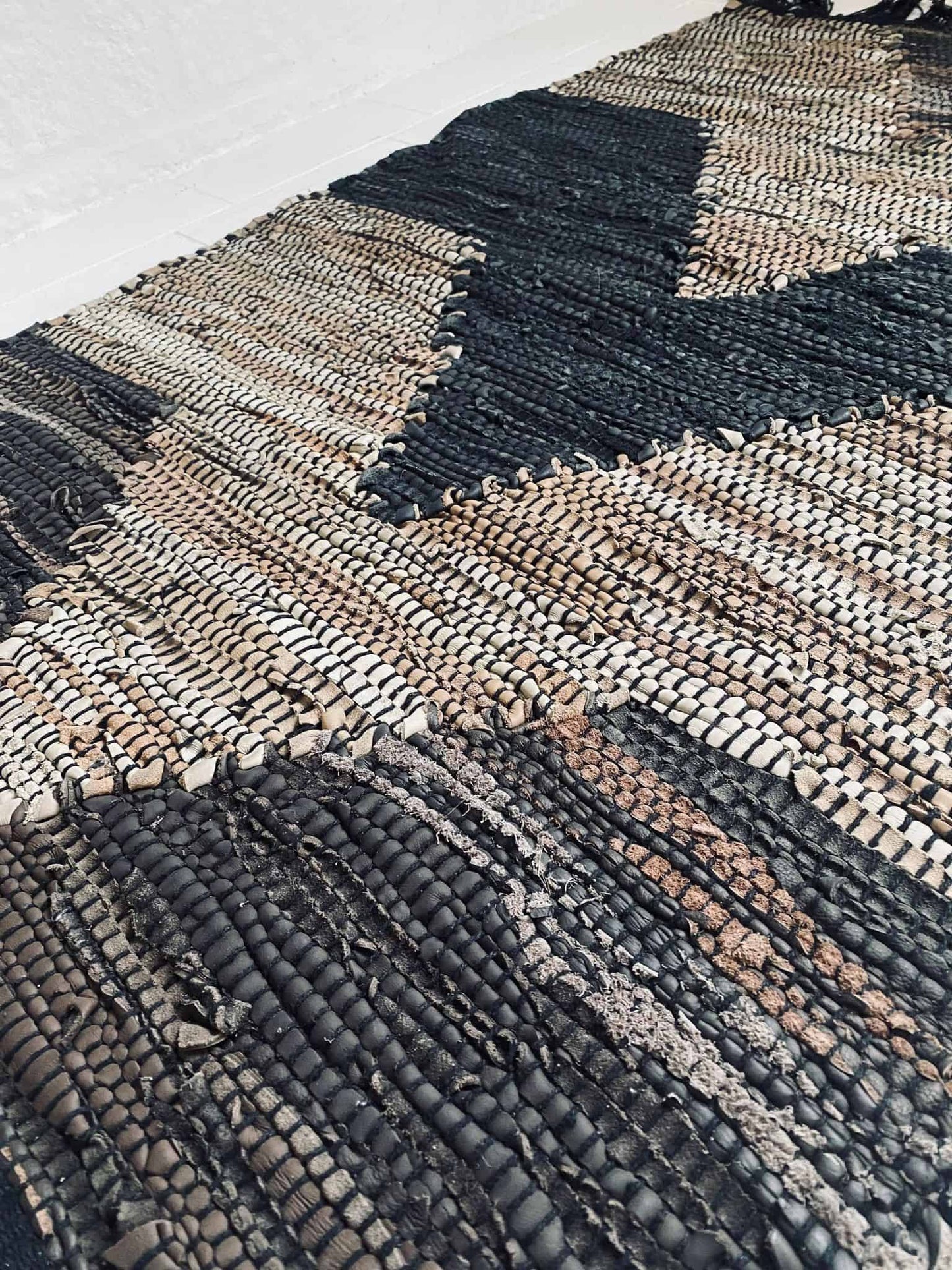 Gulvtæppe i flettet skind – Brown zigzag 60x90cm