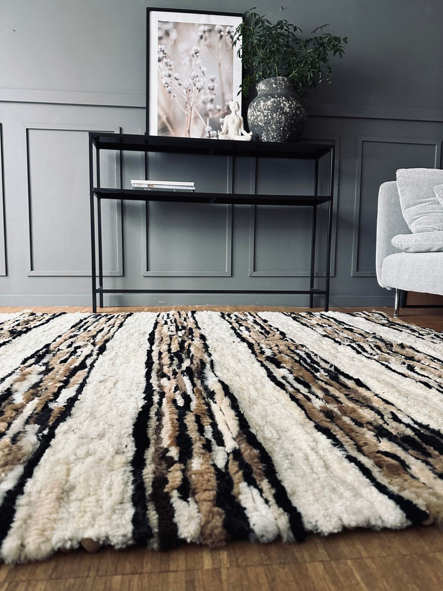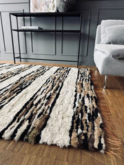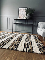 Gulvtæppe i lammeskind - Hvide striber