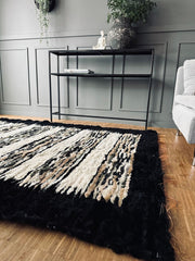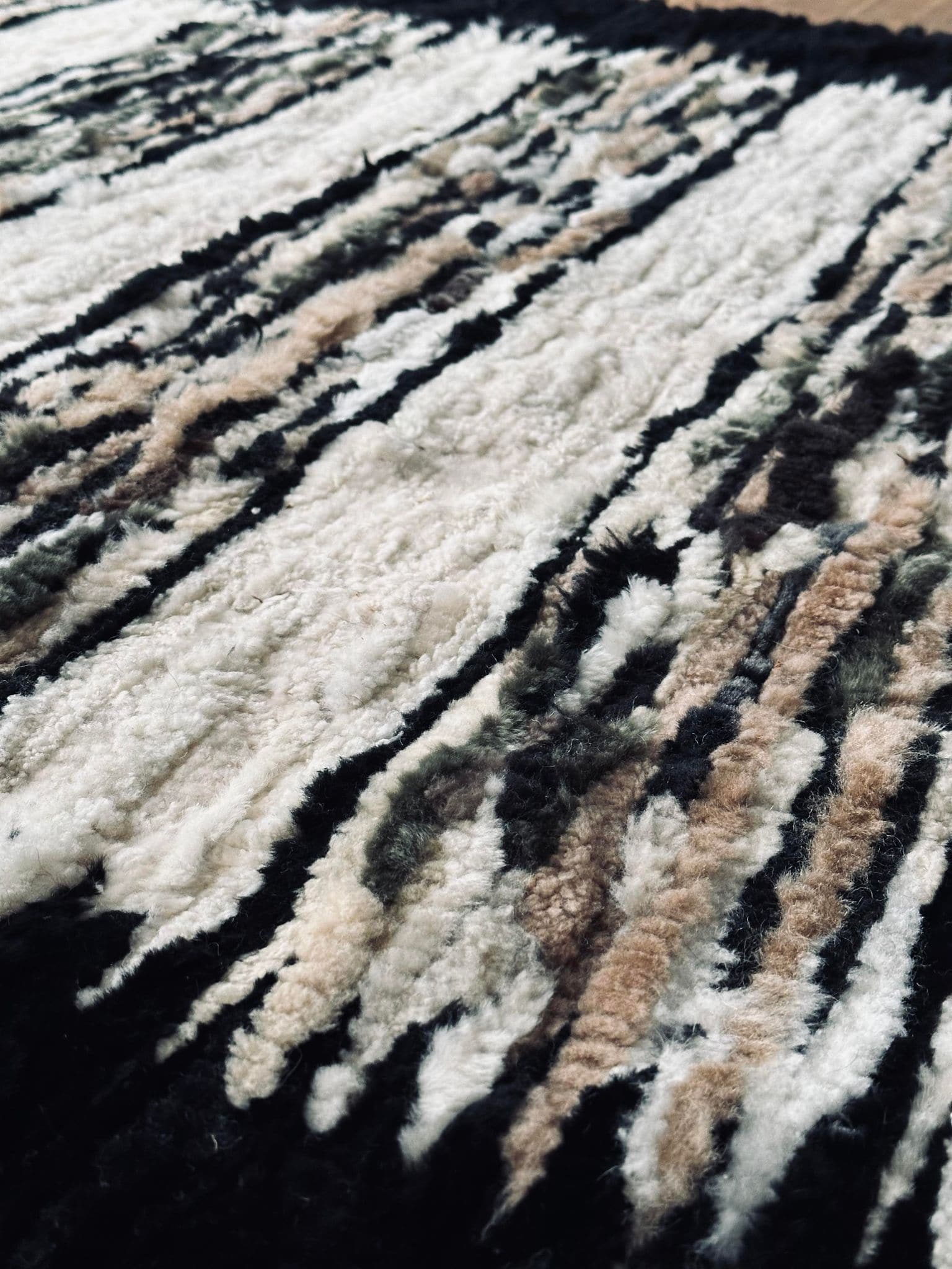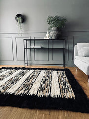 Gulvtæppe i lammeskind - Lyse nuancer m. sort kant