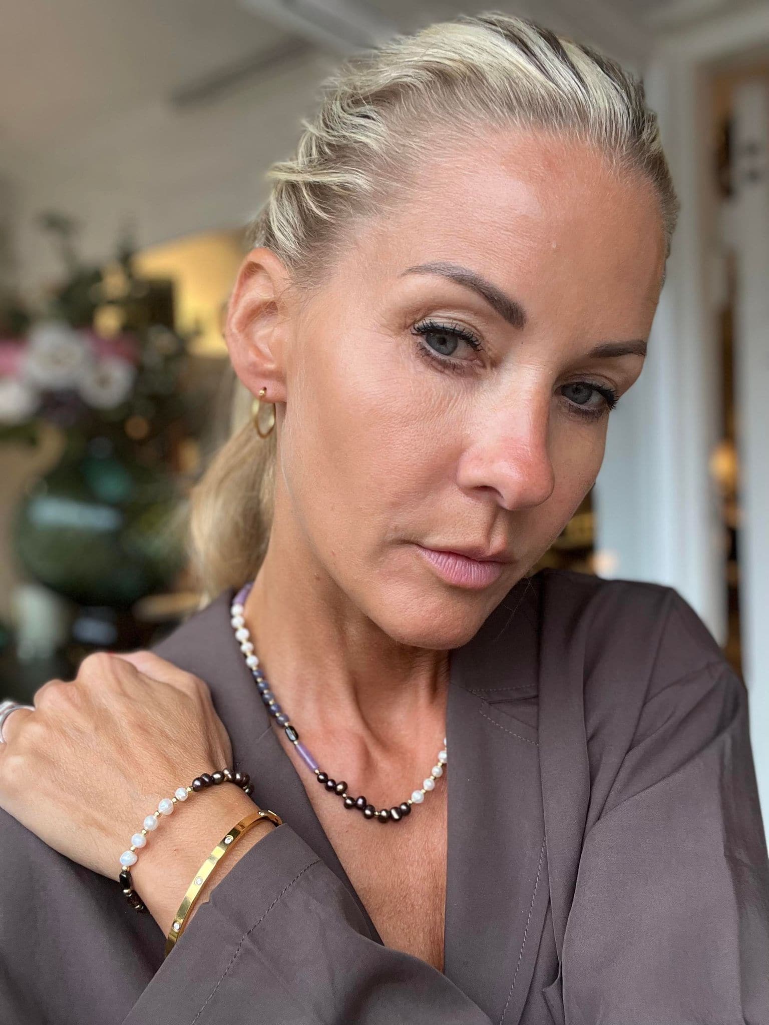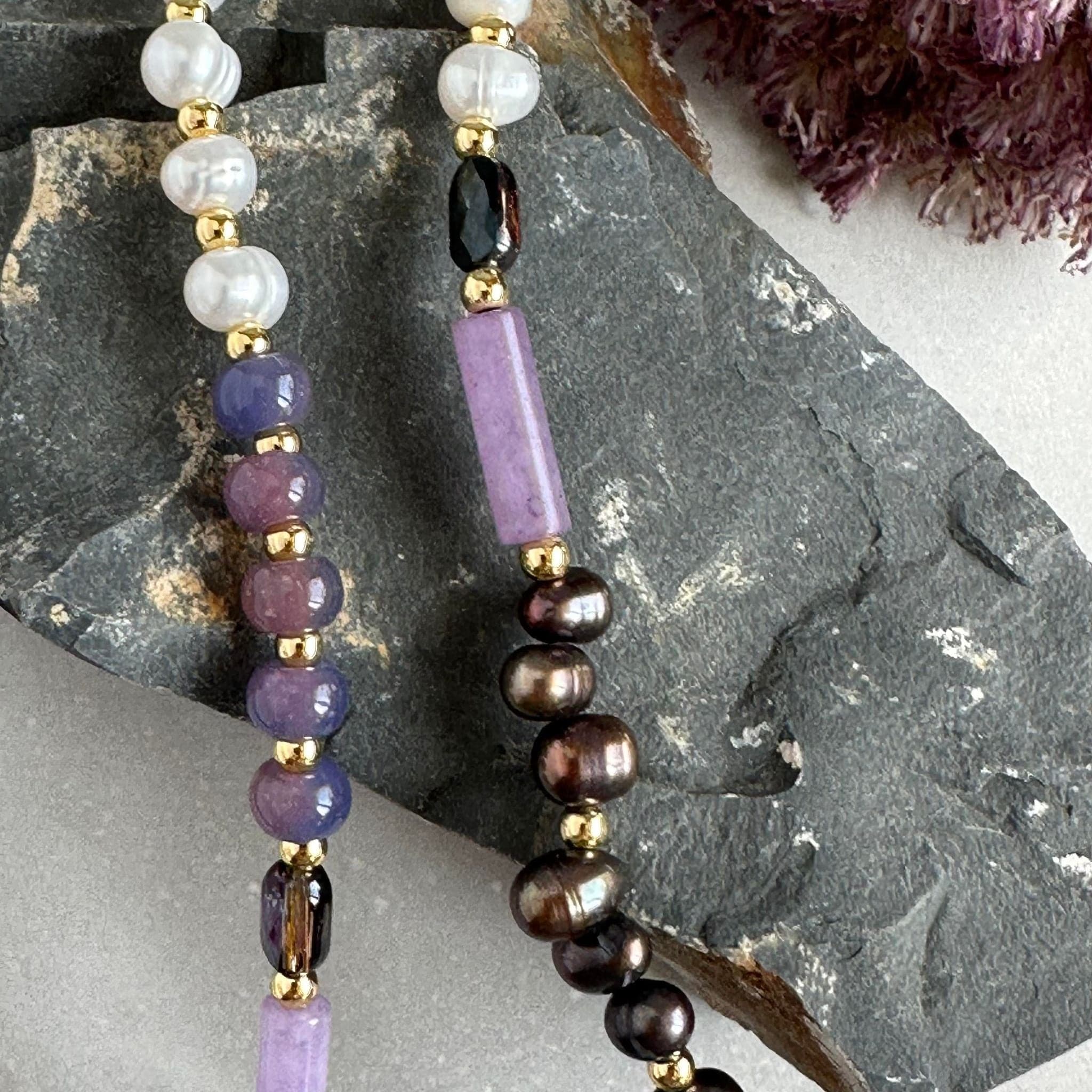 Halskæde med ægte og unikke ferskvandsperler. Isat en smykkelås, fremstillet i messing forgyldt 18K.