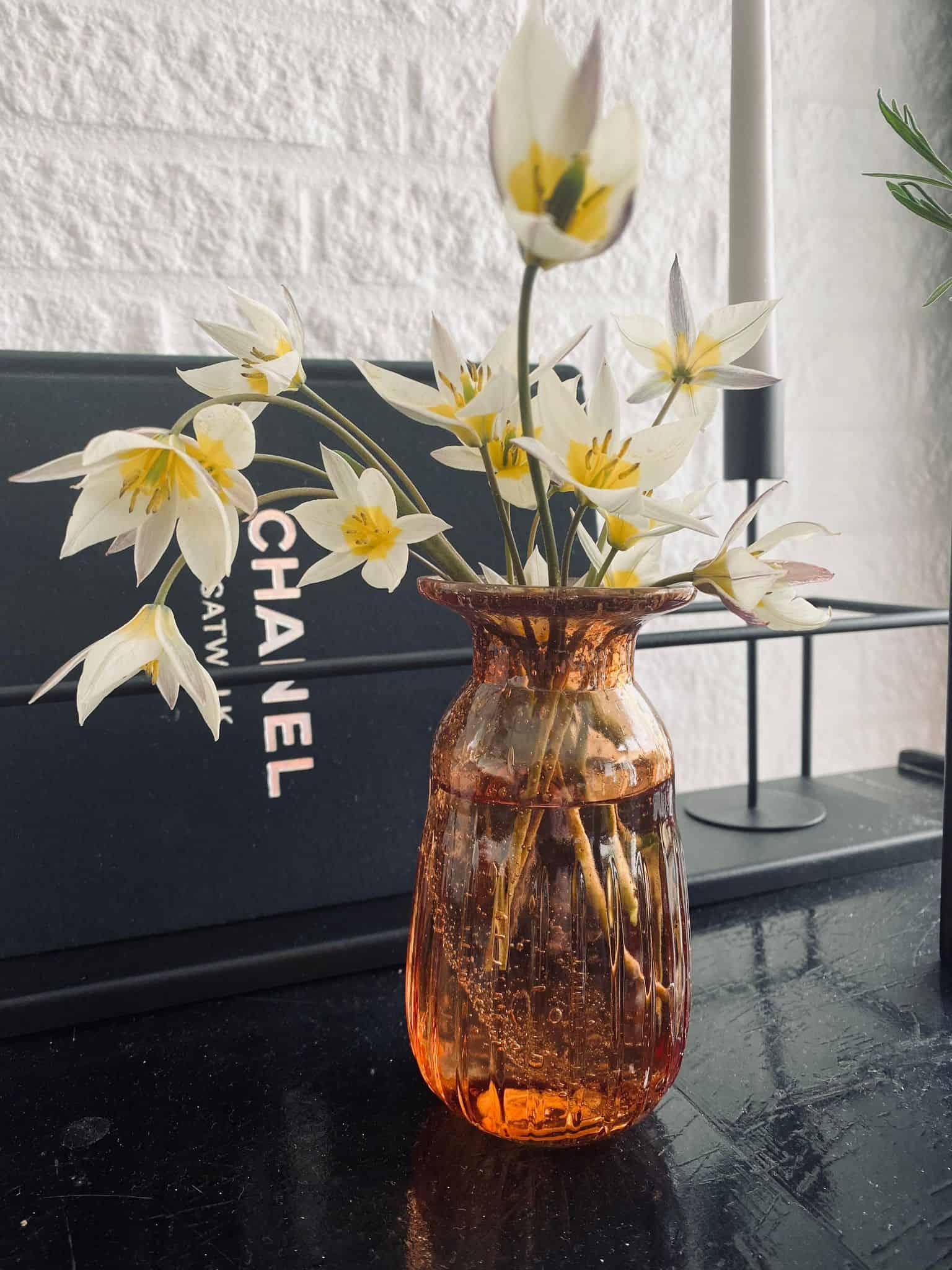 Smuk lille vase , perfekt til dekoration på en bakke med lys eller på en sød hylde.