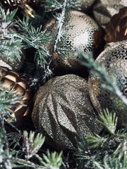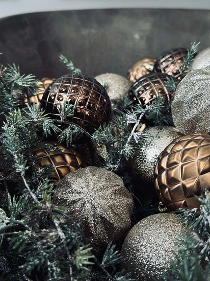 - Fin kasse med alt du skal bruge til at dekorere juletræet med.