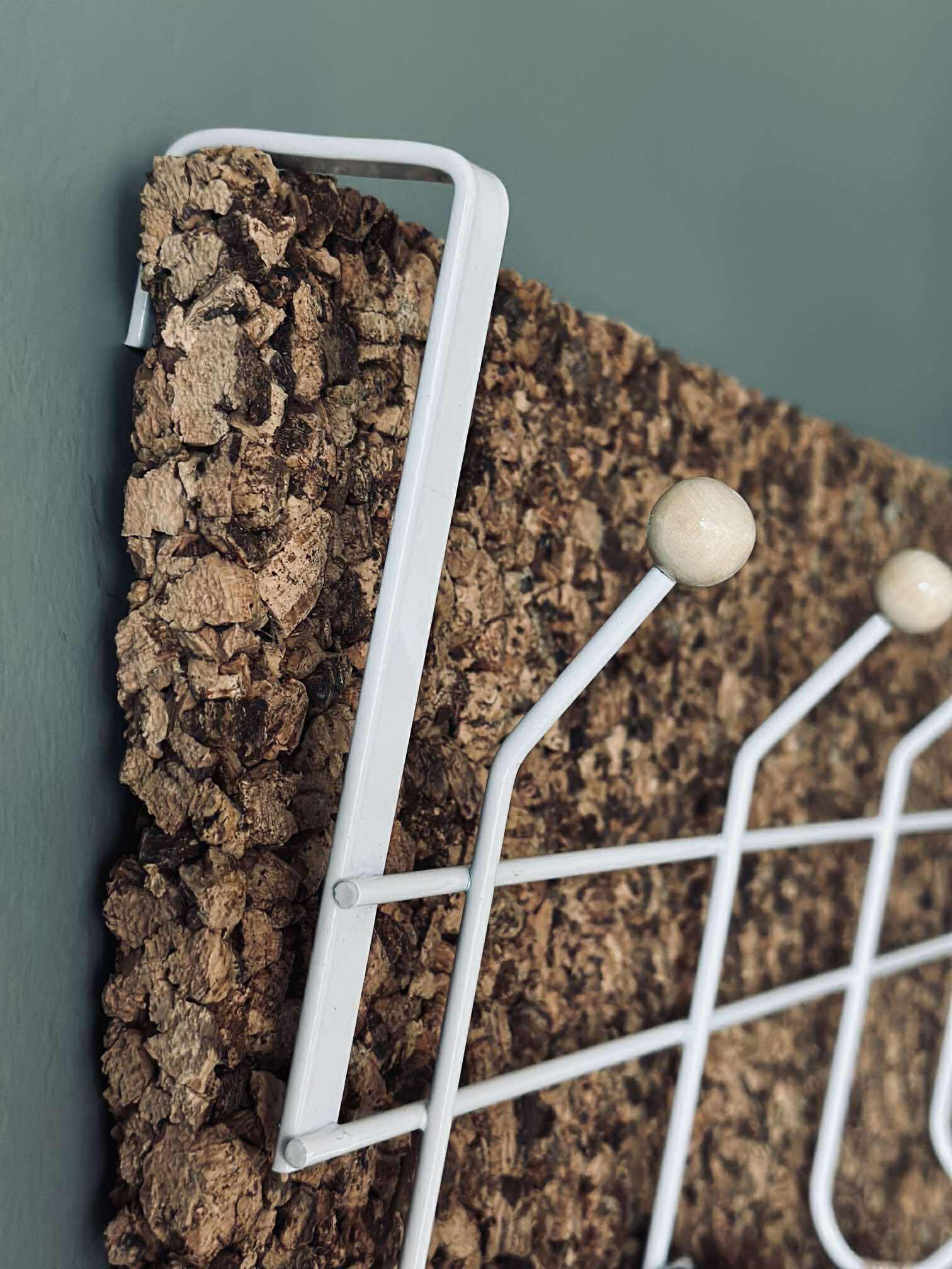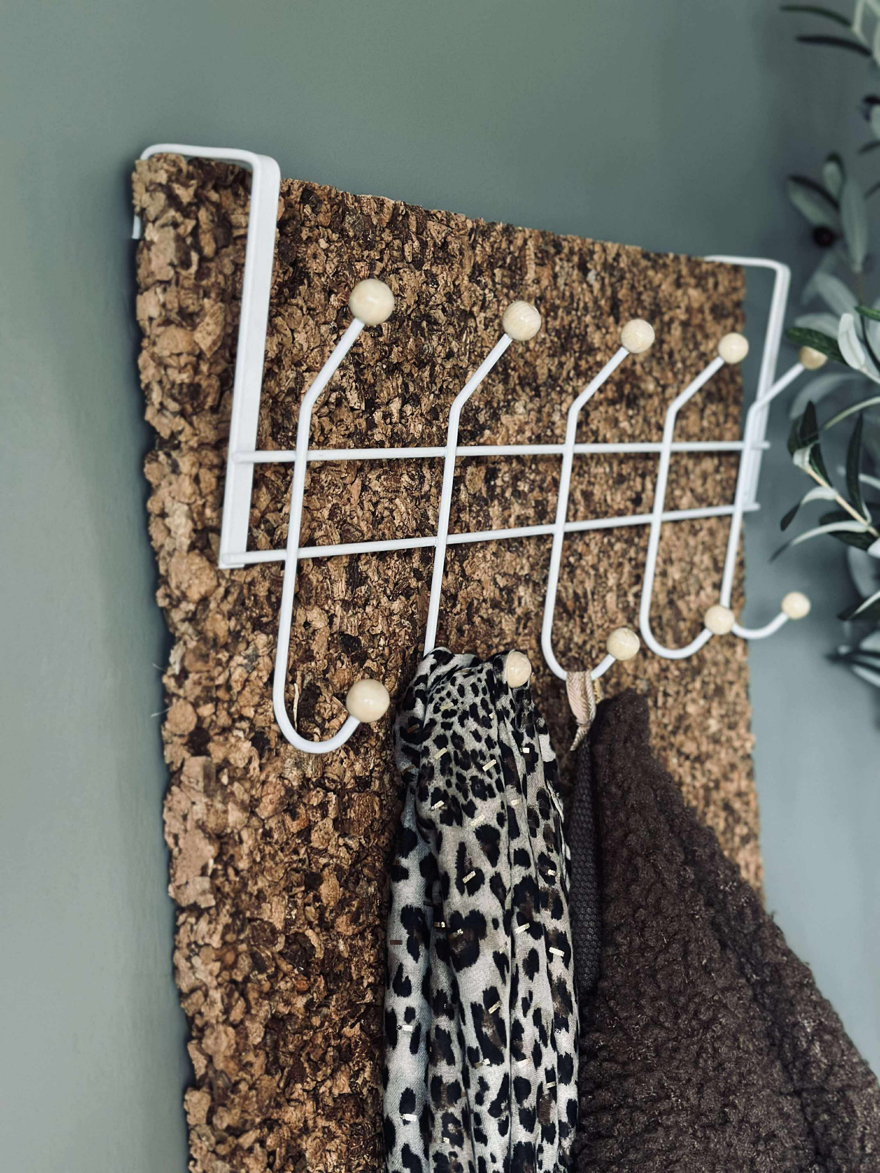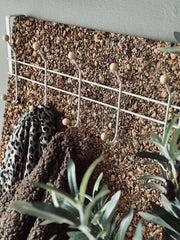 I hvid metal med 10 knager i træ.