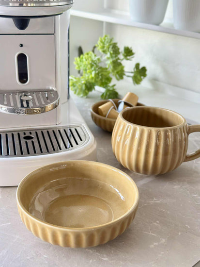 Når du nyder en varm kop kaffe om morgenen, ønsker du en praktisk og robust løsning. Krus VIGA Strib - Sennep giver en enkel og funktionel brug, der passer til hverdagslivet, og gør rengøringen nem med sine praktiske egenskaber.