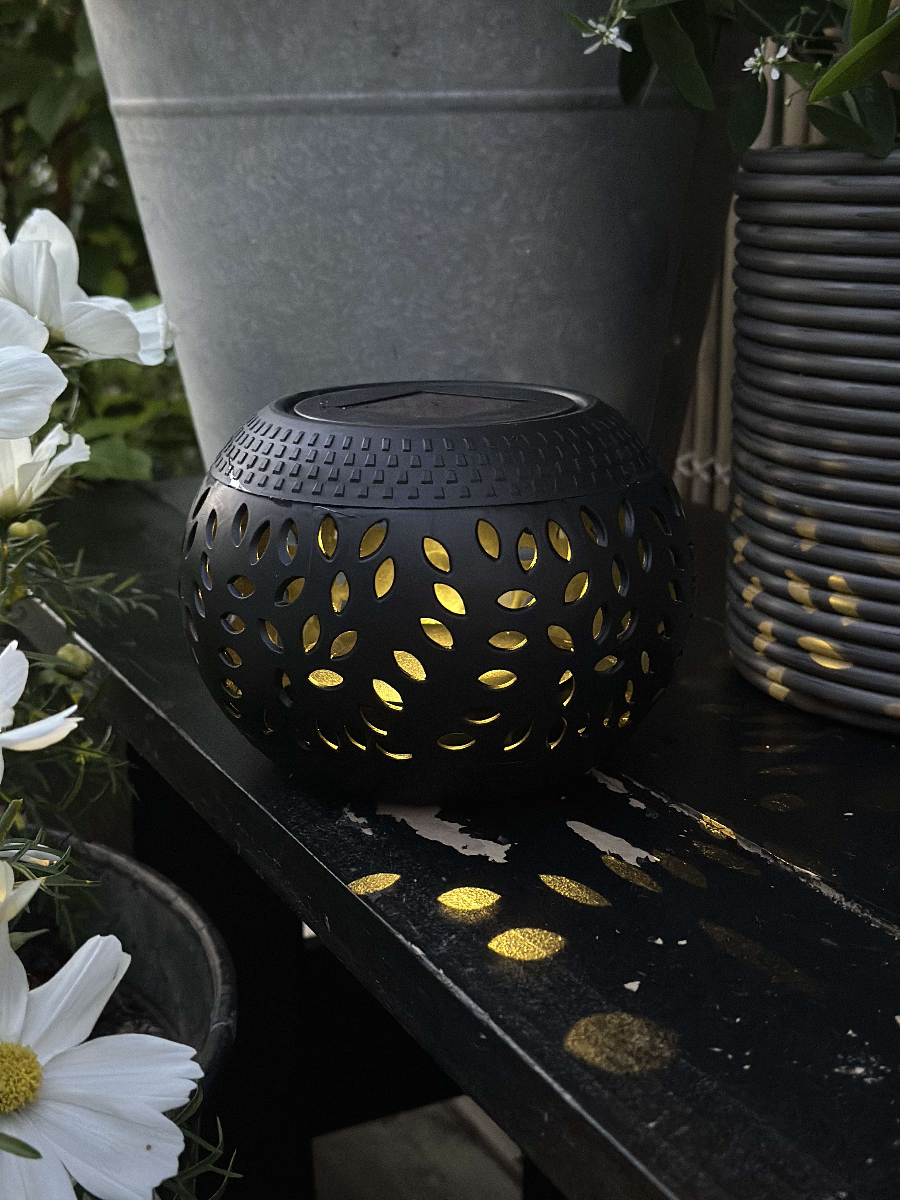 Dekorativ bordlanterne med solceller.