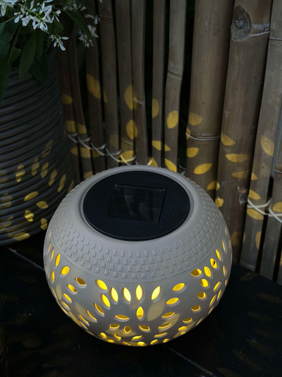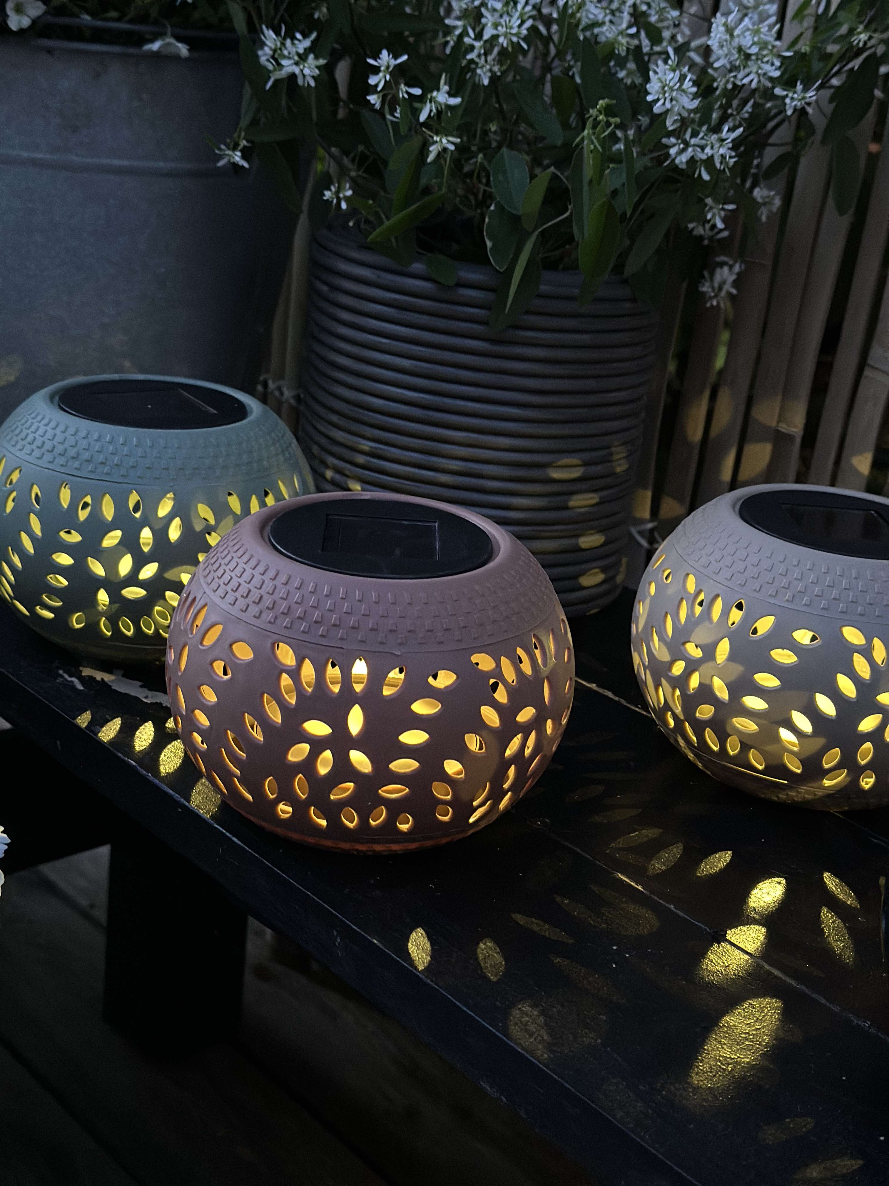 Lanternen oplades af solen og lyser automatisk når mørket falder på.