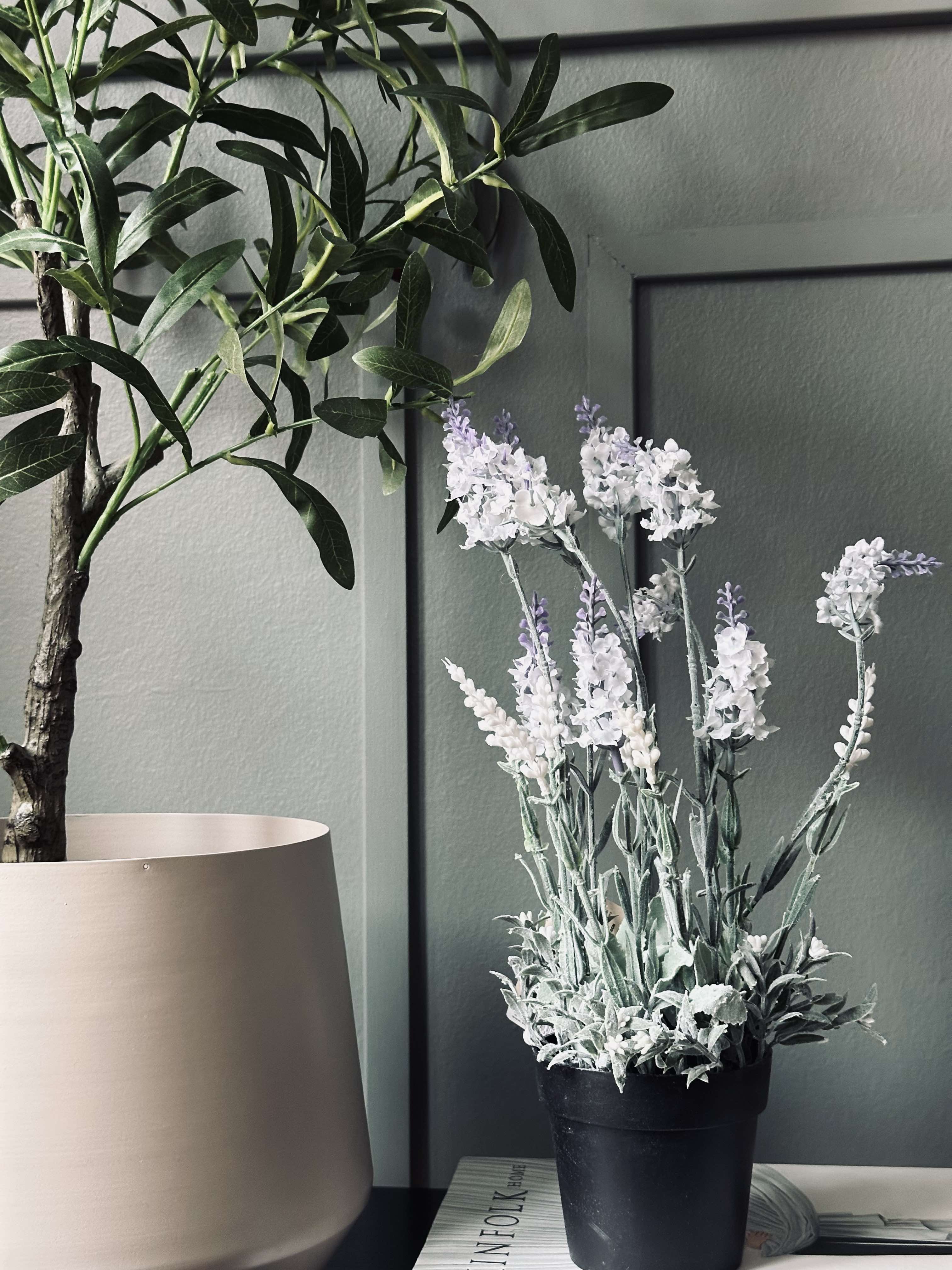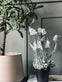Blomsten er lavet i plast. Velegnet til fx sommerhus eller placeringer hvor det ikke kræver sollys eller vanding.
