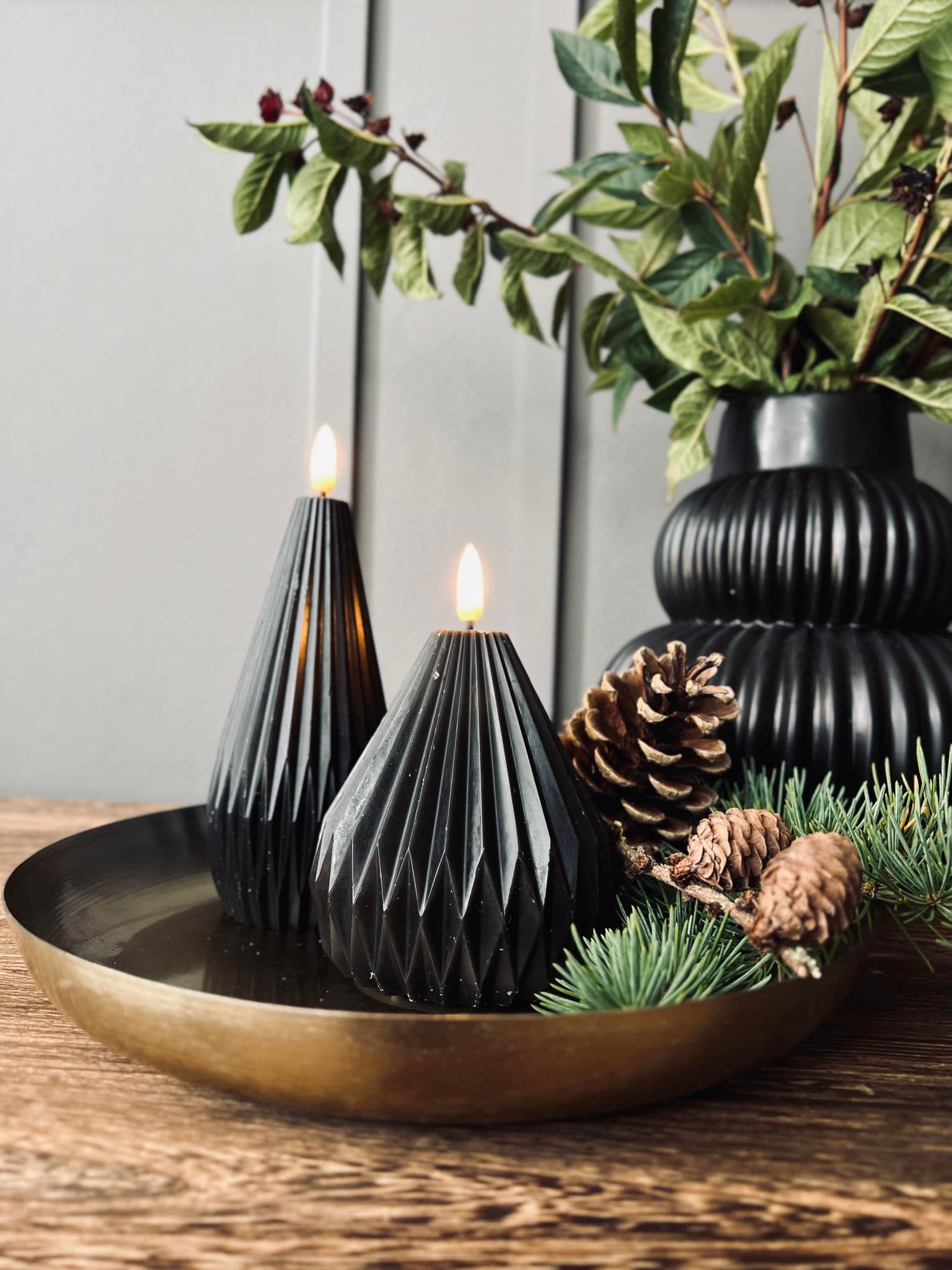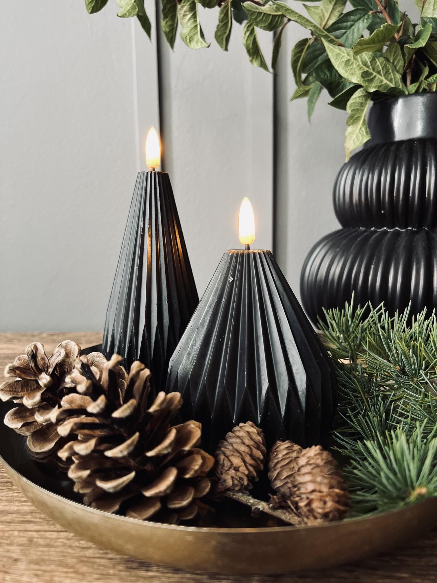 LED Design Sorte keglelys - Sæt af 2 stk m. Timerfunktion