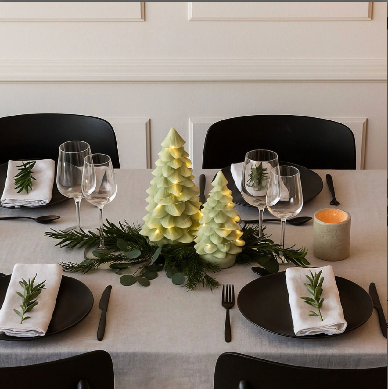 Med indbyggede lys og dekorative lyskæder skaber de en varm og magisk stemning – perfekt til bordet, vindueskarmen eller som del af julepynten i hele hjemmet.