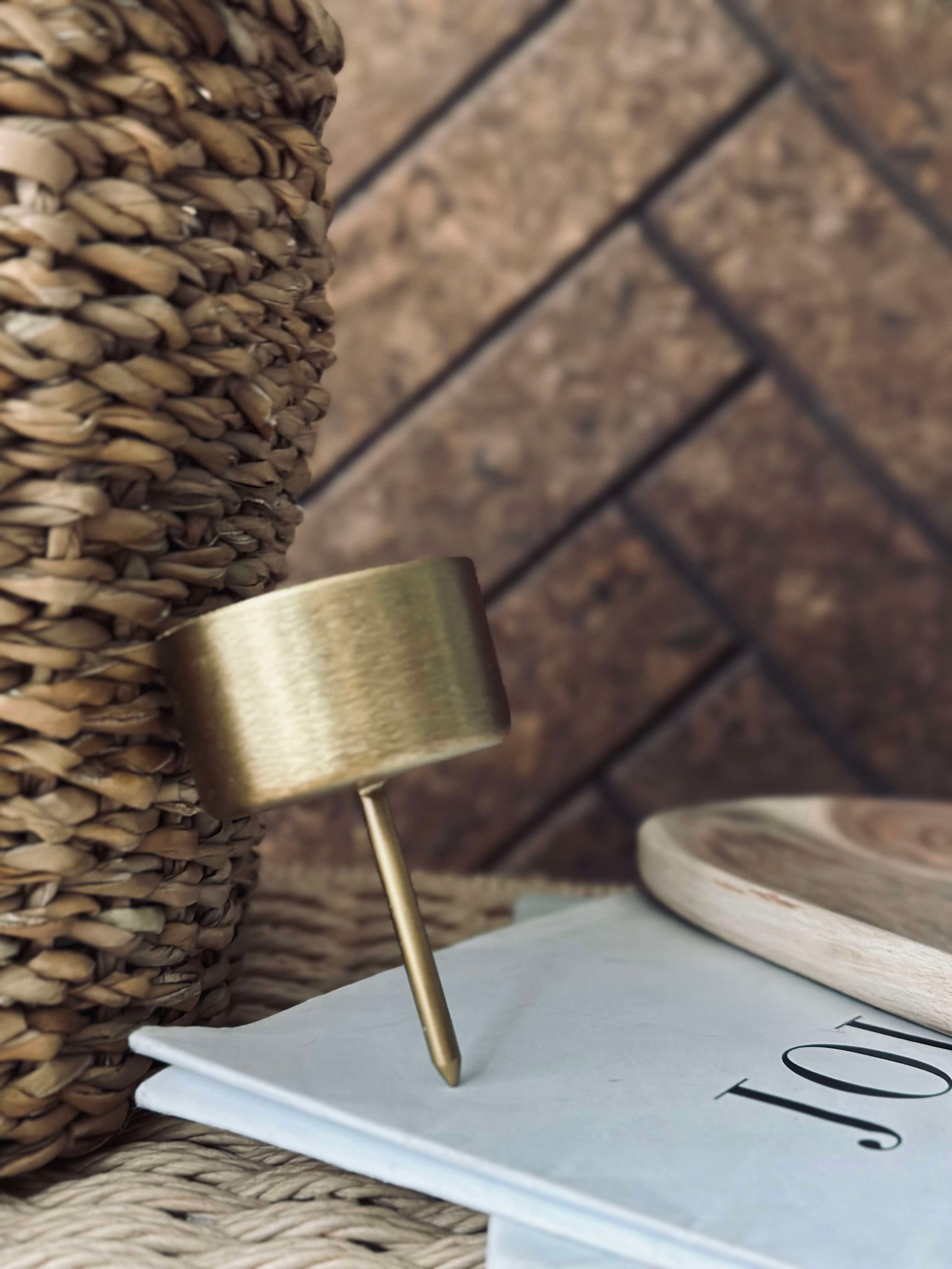 Lysholder m. spyd til bloklys - Guld 1 Stk