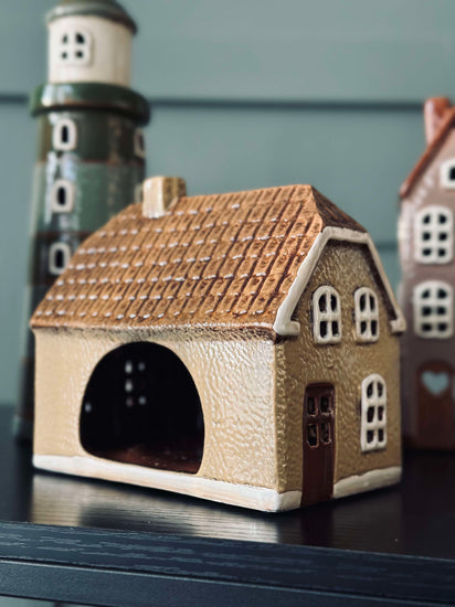Charmerende lyshus i keramik.