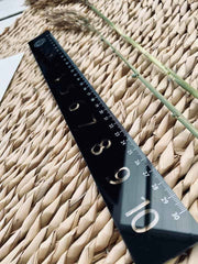 Gør skrivebordet lidt mere gennemført med en eksklusiv linial i sort akryl. Den er 30 cm og passer perfekt, når du vil have styr på linjer, noter og små projekter uden at gå på kompromis med udtrykket.