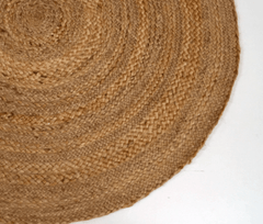 Lækkert rundt, håndvævet jutetæppe Ø 120 cm i naturfarve.