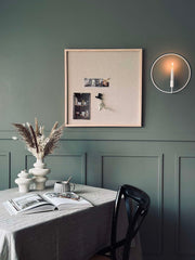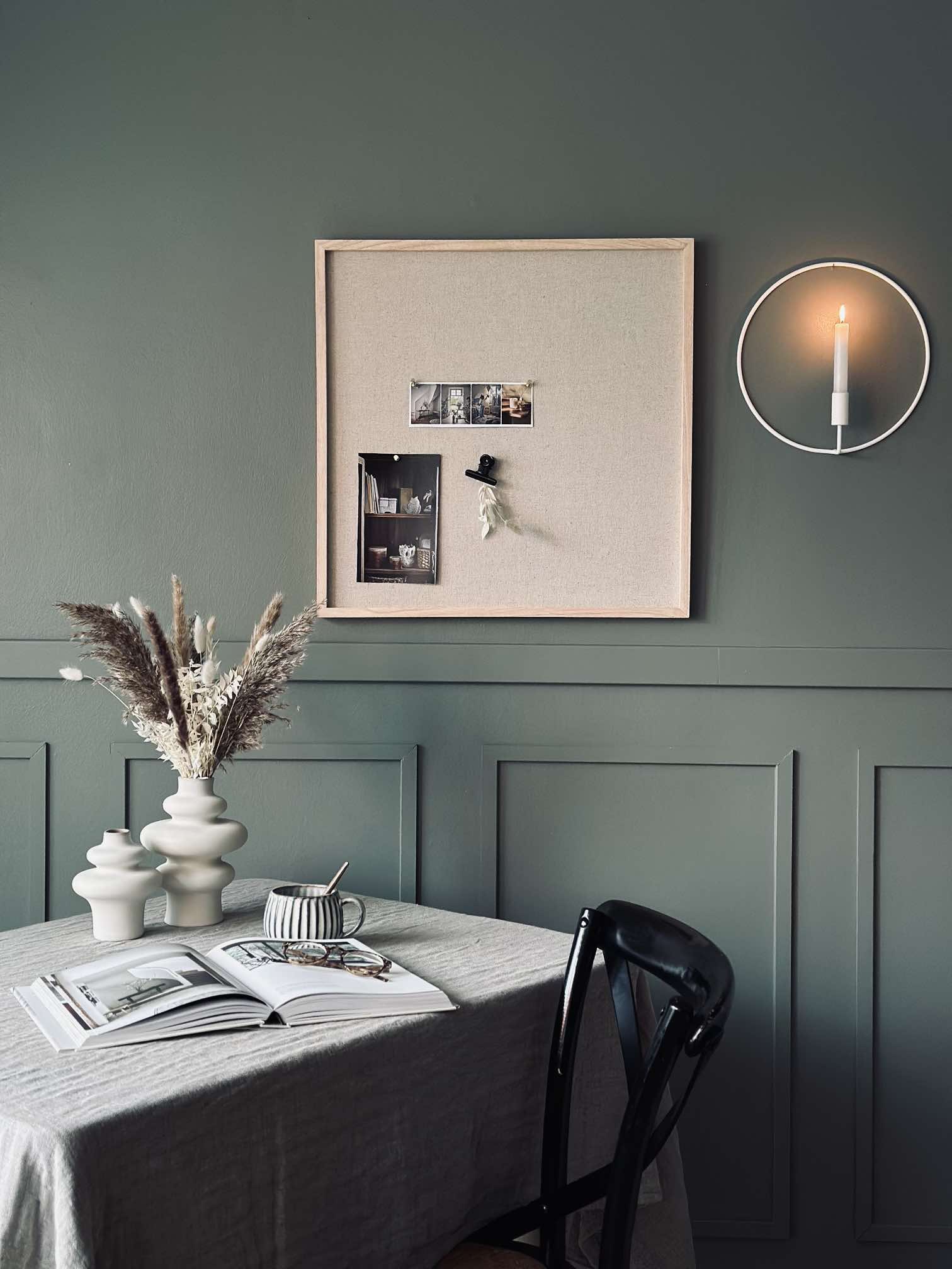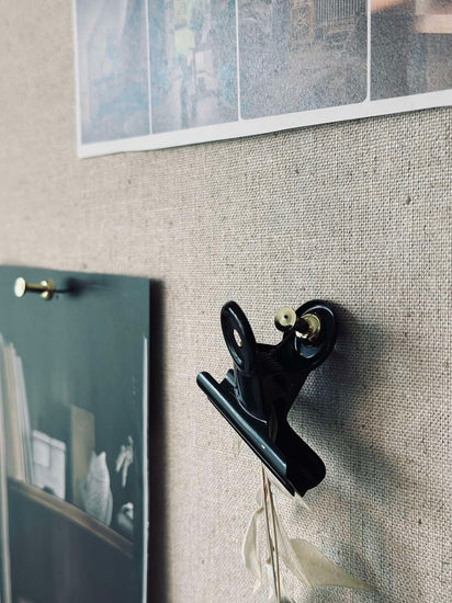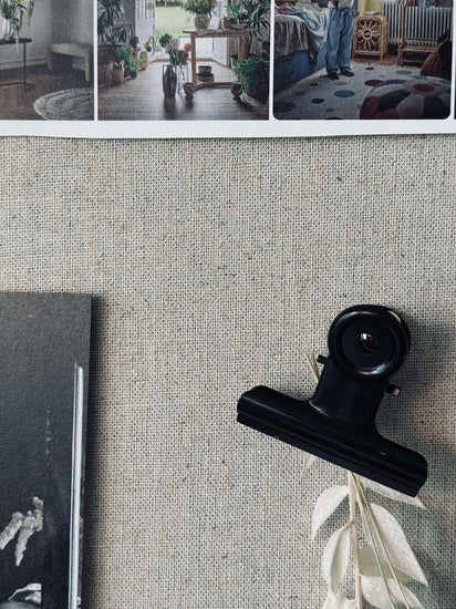 Der er monteret to beslag på bagsiden, hvilket gør det nemt at hænge opslagstavlen op med to skruer i væggen. Skruer medfølger ikke. Vær opmærksom på, at stoffet kan falme en smule, hvis det udsættes for direkte sollys gennem en længere periode.