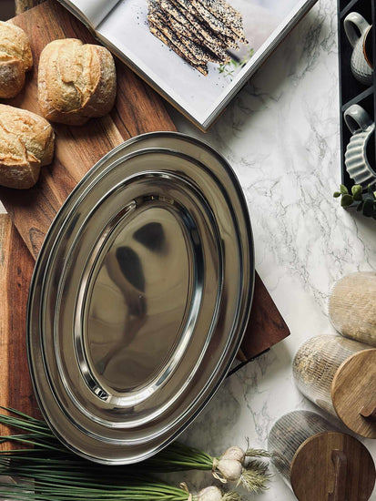 Ovalt fad Rustfrit Stål - Sæt med 3 stk.