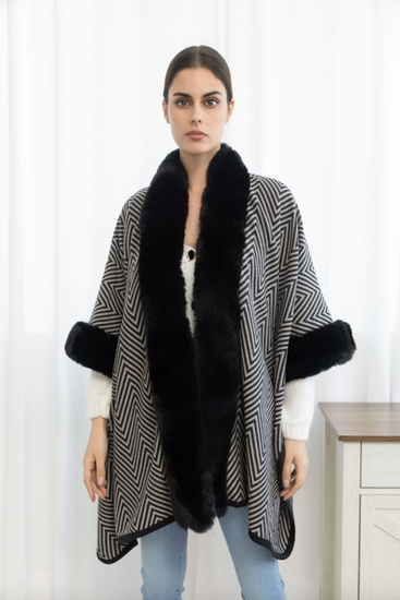 Poncho med pelskant - Black