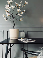 Du kan bruge urtepotten både inde og ude, alt efter hvor du ønsker at skabe et grønt hjørne. Det enkle beton look giver et stilrent udtryk, som er nemt at kombinere med forskellige krukker og indretninger.
