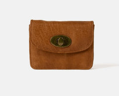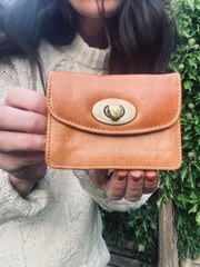 Fold over flap tegnebog med guld tone twist-lock lukning.