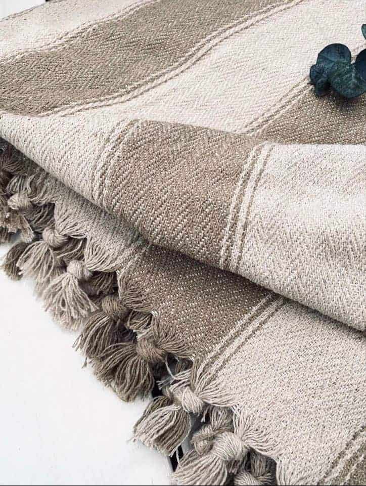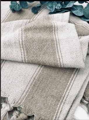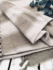 Sengetæppe -kaffe latte/m. bred stribe.