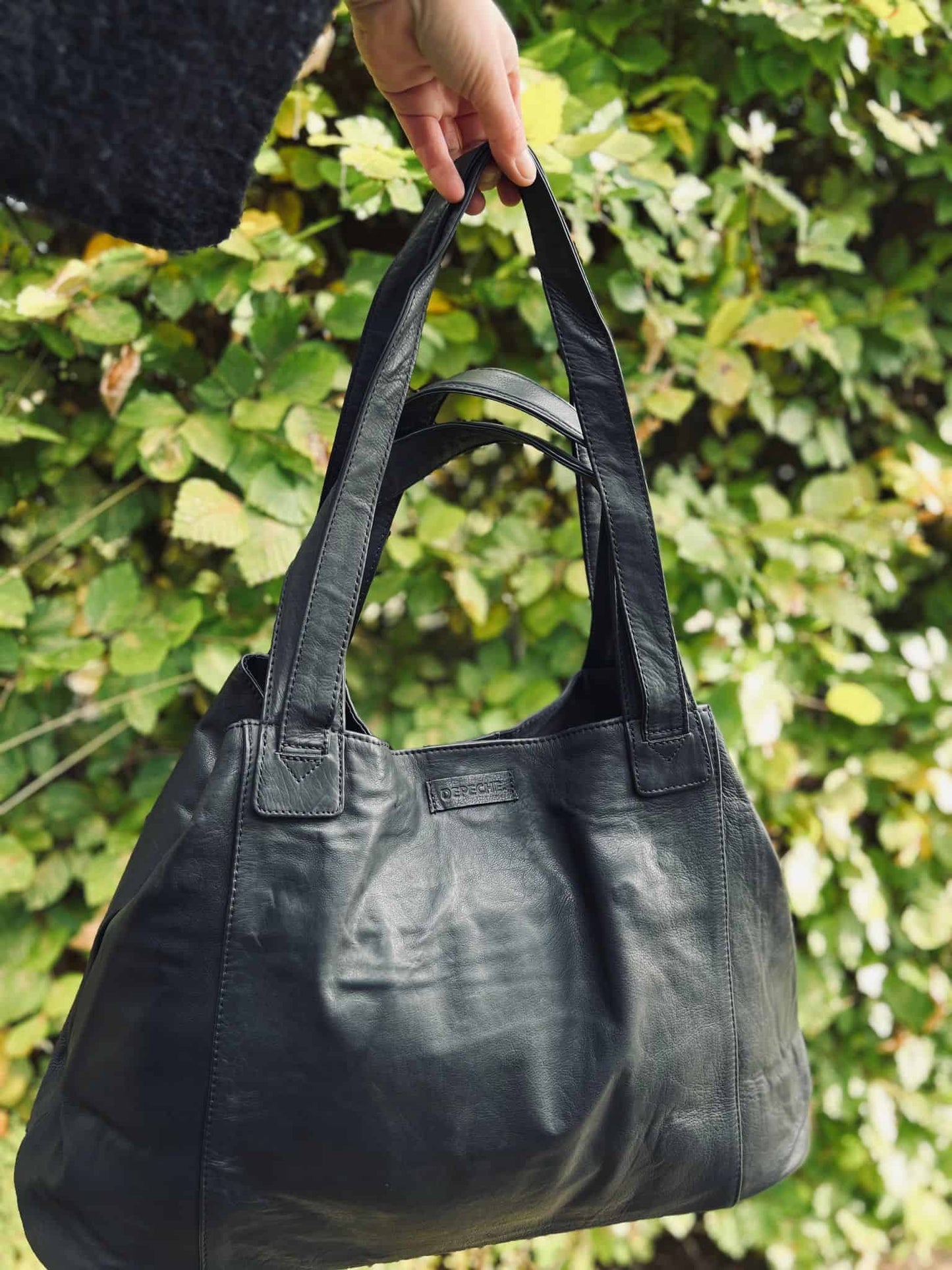 Stor håndtaske i blød og lækker læderkvalitet. Tasken har et tidsløs og enkelt design, hvilket giver mange anvendelsesmuligheder. Tasken lukkes med trykknap i toppen.