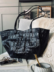 Denne shopper i croco look forener klassisk elegance med funktionelt design – et stilfuldt must-have til dig, der ønsker både rummelighed og raffineret udtryk i én og samme taske.