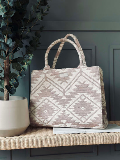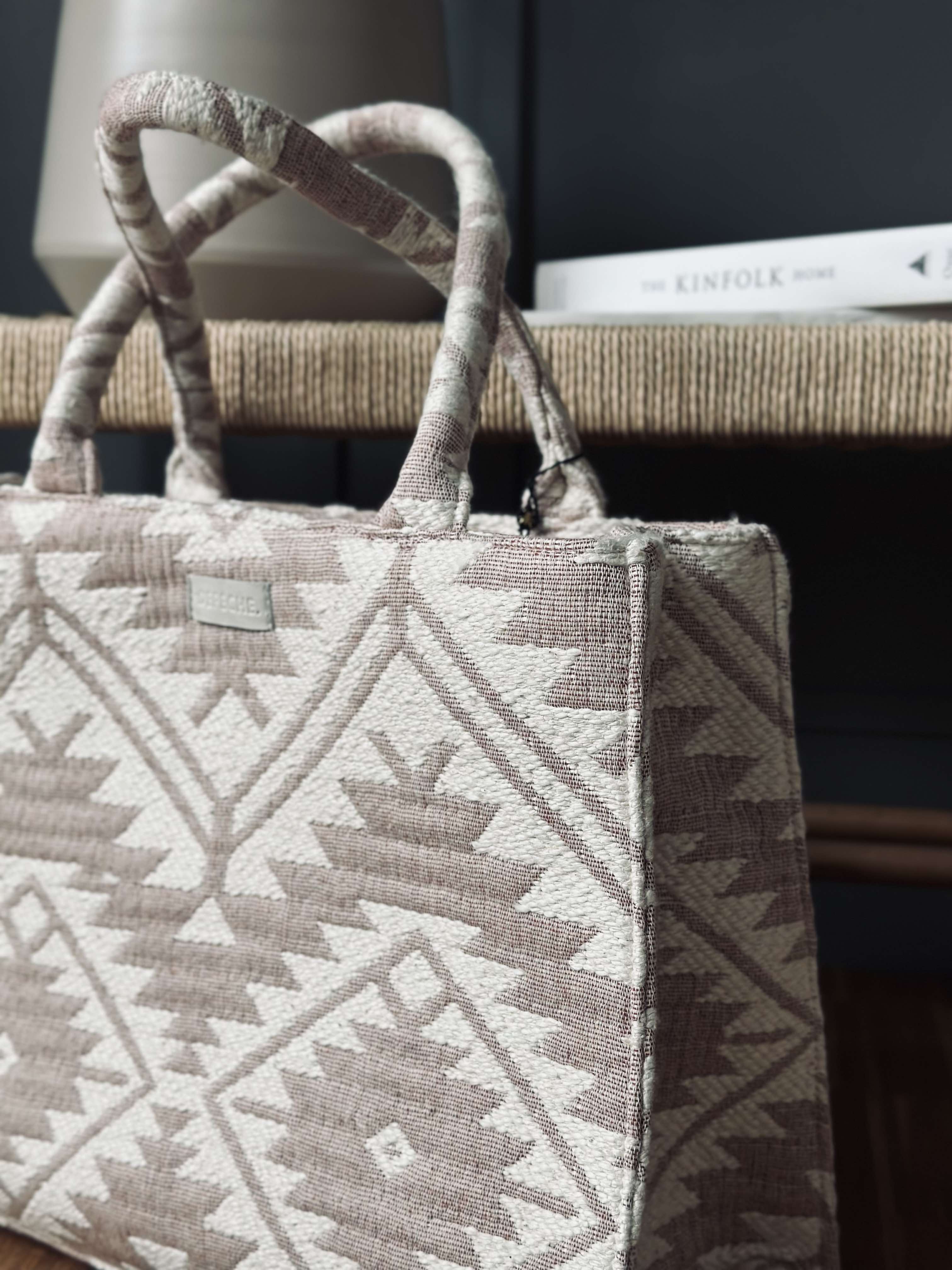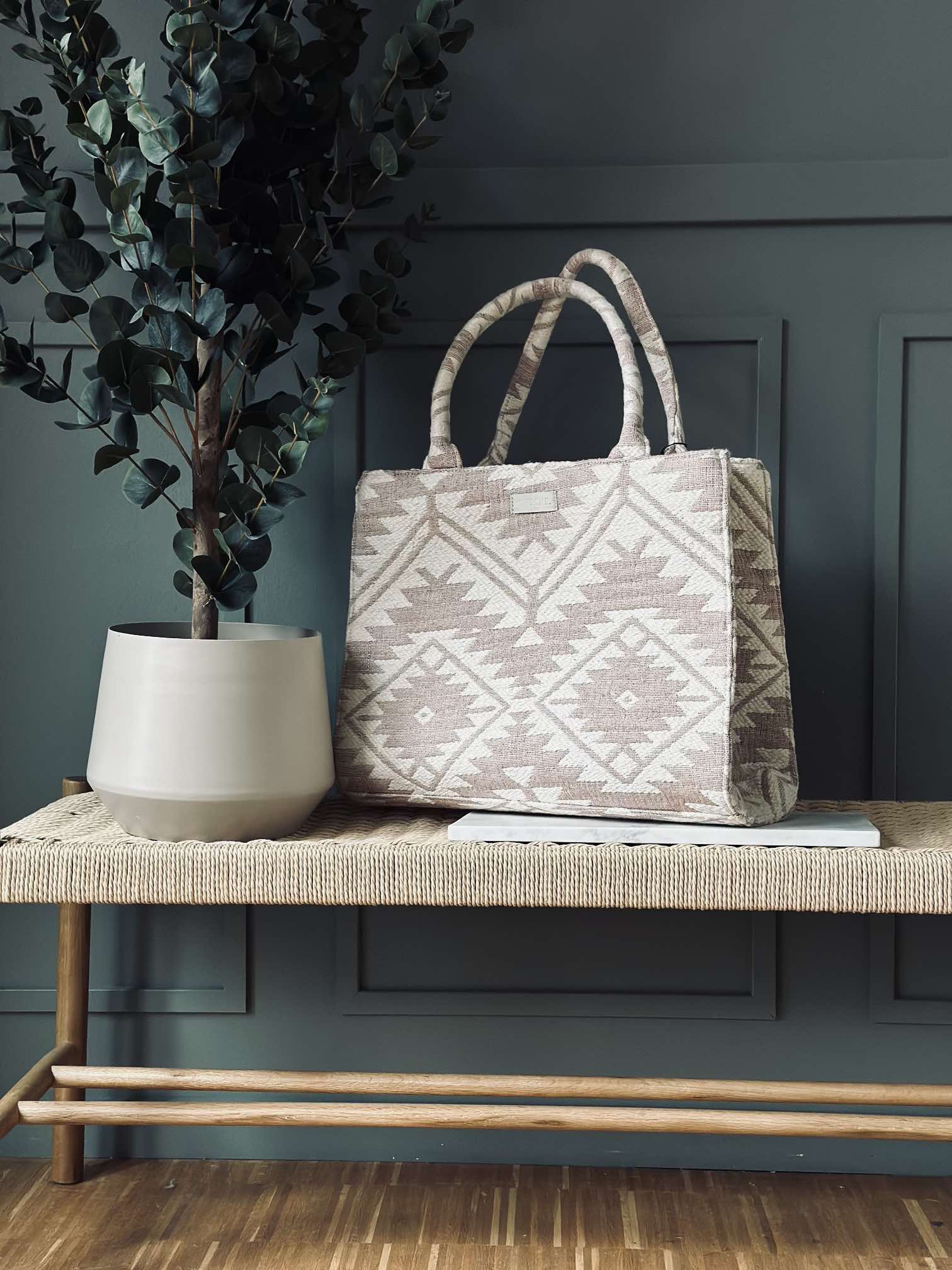 Denne store shoppertaske emmer af luksus og elegance med sit eksklusive mønster og sofistikerede design.