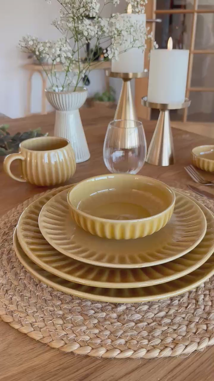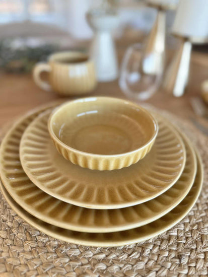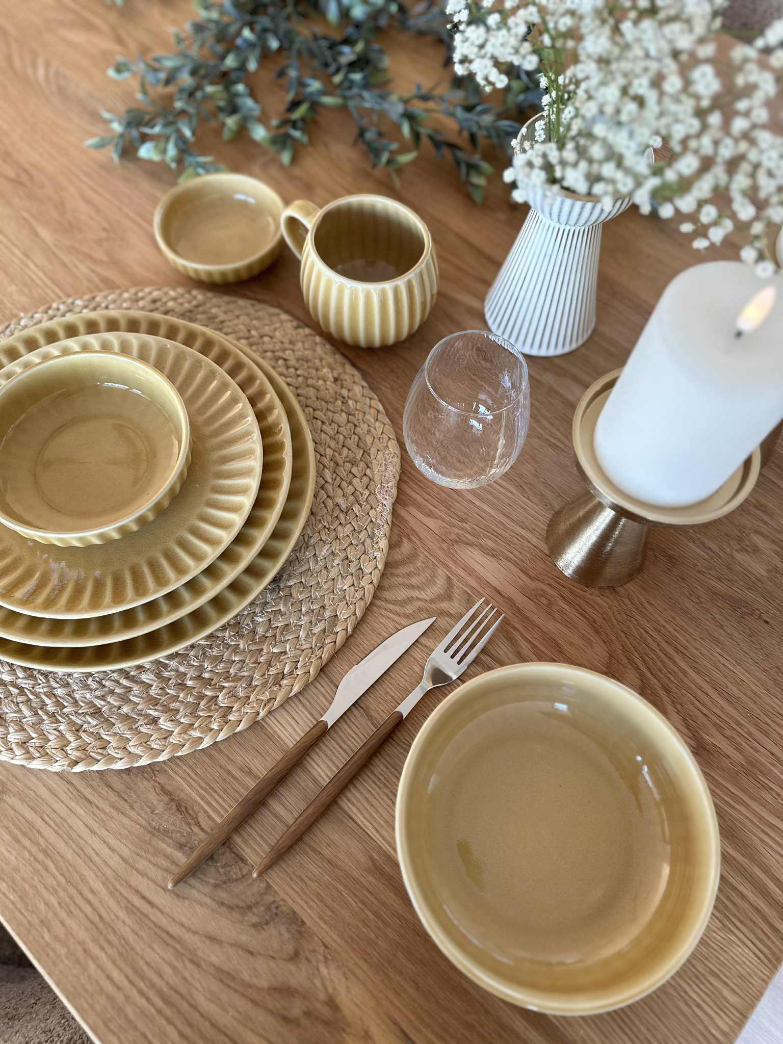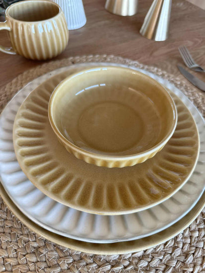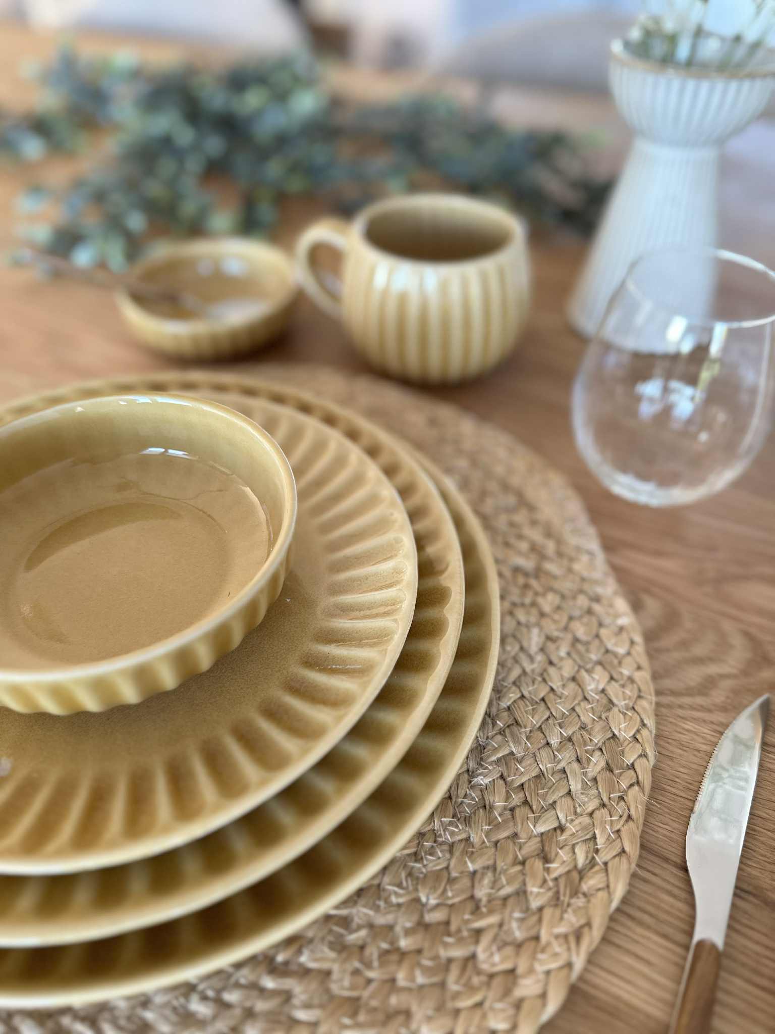 Skål VIGA strib stentøj - Sennep flere størrelser