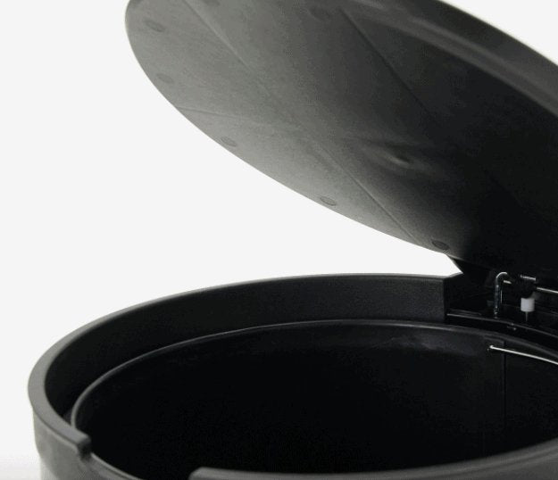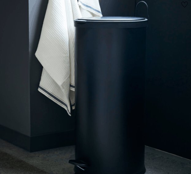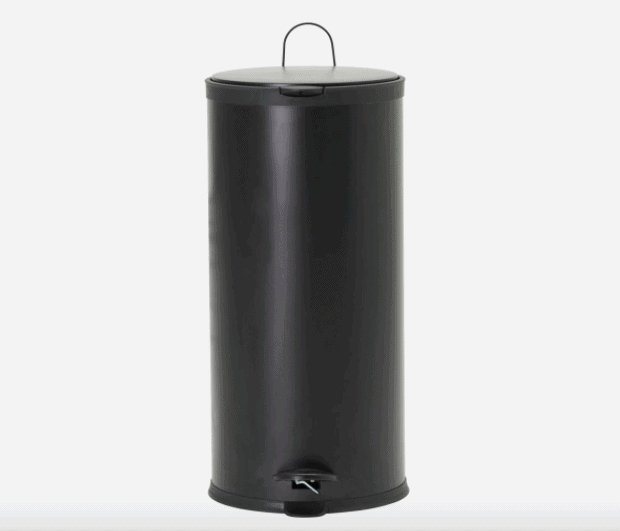 En stor, sort pedalspand, der er ideel det store familiekøkken.