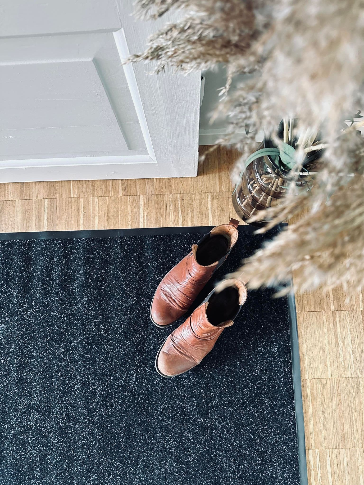 Lækker stor , praktisk dørmåtte i polyester og PVC.