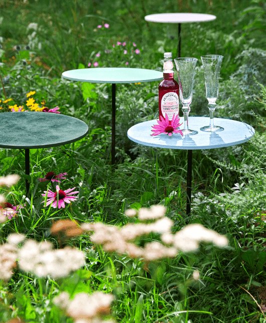 Brug det som sidebord eller pynt haven op til gardenparty med fine runde borde eller stik bordet længere ned i græsset og brug det som bord til børnene.