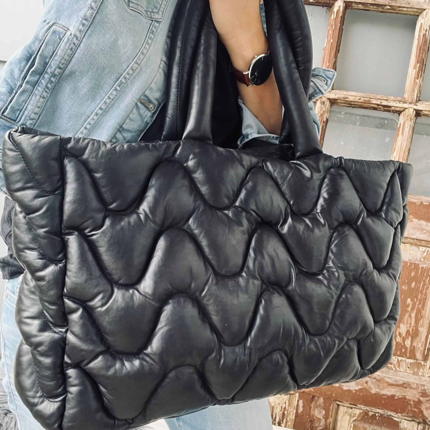 Super lækker oversize shopper i det blødeste lammeskind .