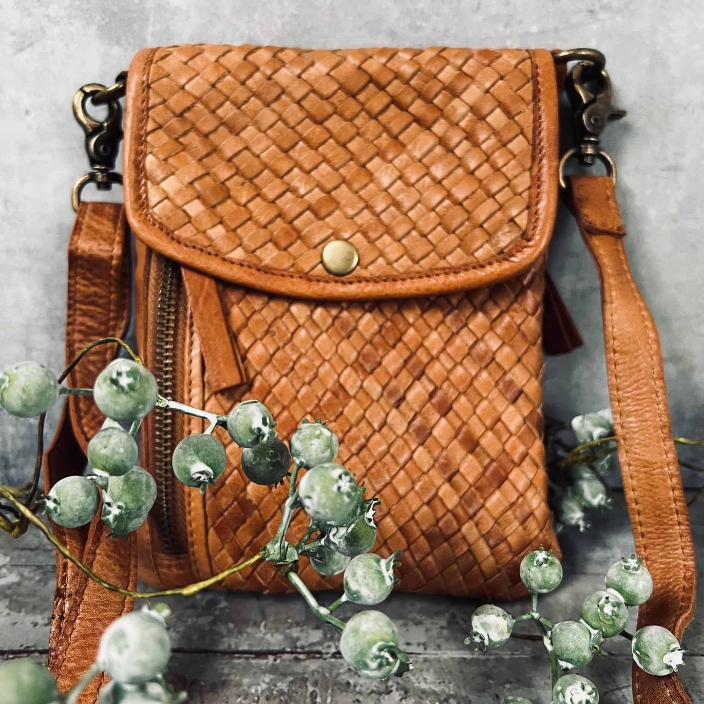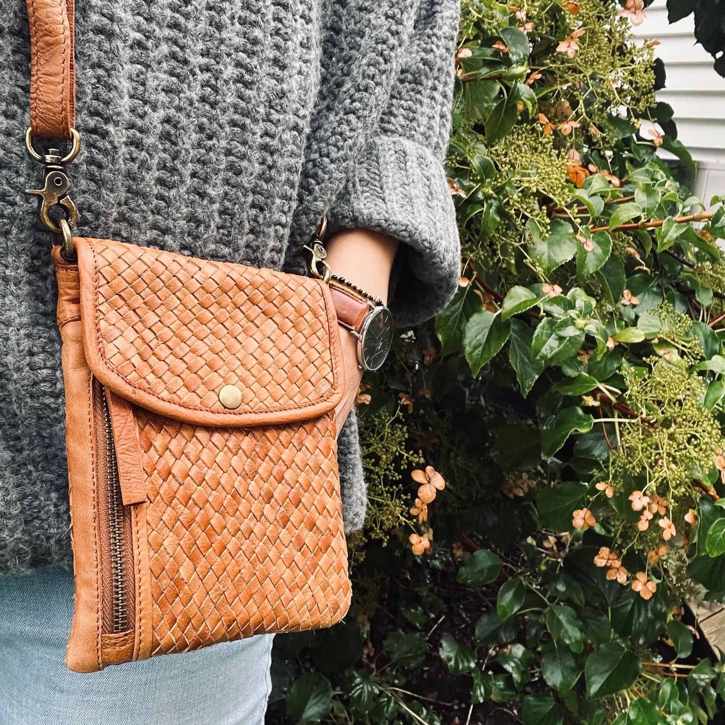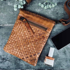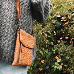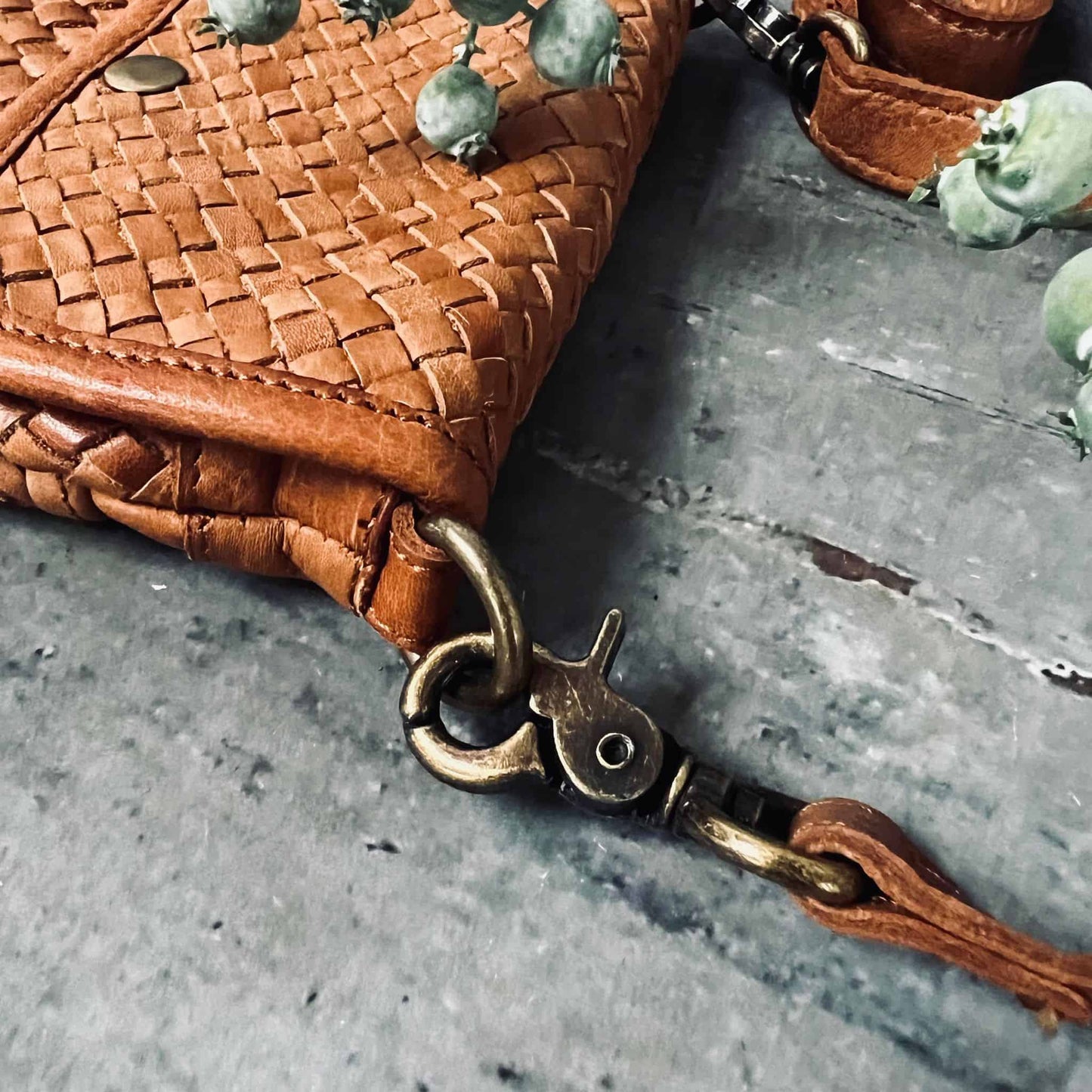 Denne slanke skuldertaske i læder er smukt flettet i hånden, hvilket gør denne taske unik.